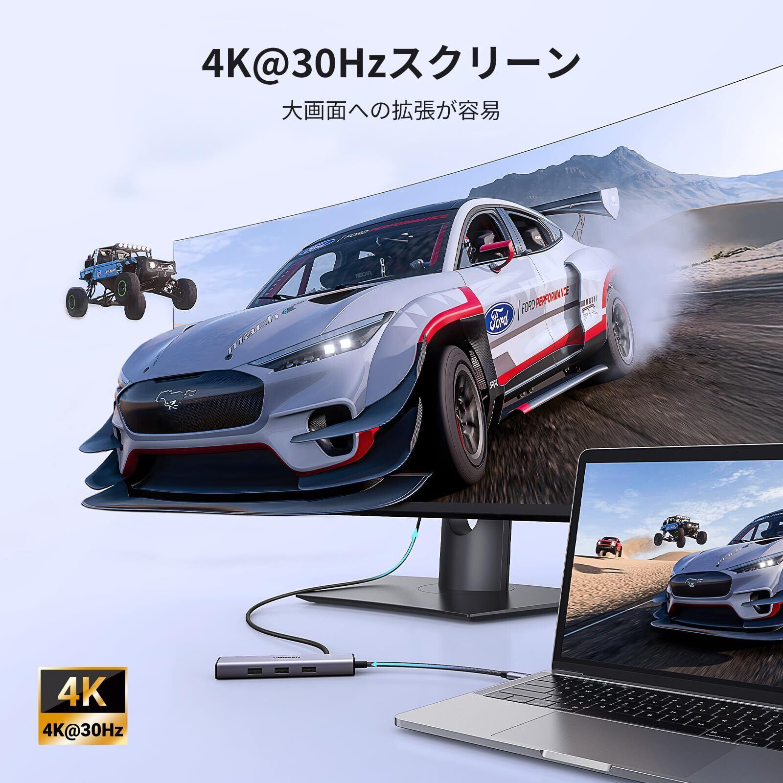 UGREEN Revodok 1061 USB-Cハブ 6-IN-1 4K@30Hz HDMI出力 Type-Cアダプター 4K HDMI 100W Power Delivery急速充電 ギガビットイーサネット LAN ポート 3*USB 3.0ポート Windows; linux; MAC;iPad;Androidシステム対応;Surface Dell MacBook Air M1 M2