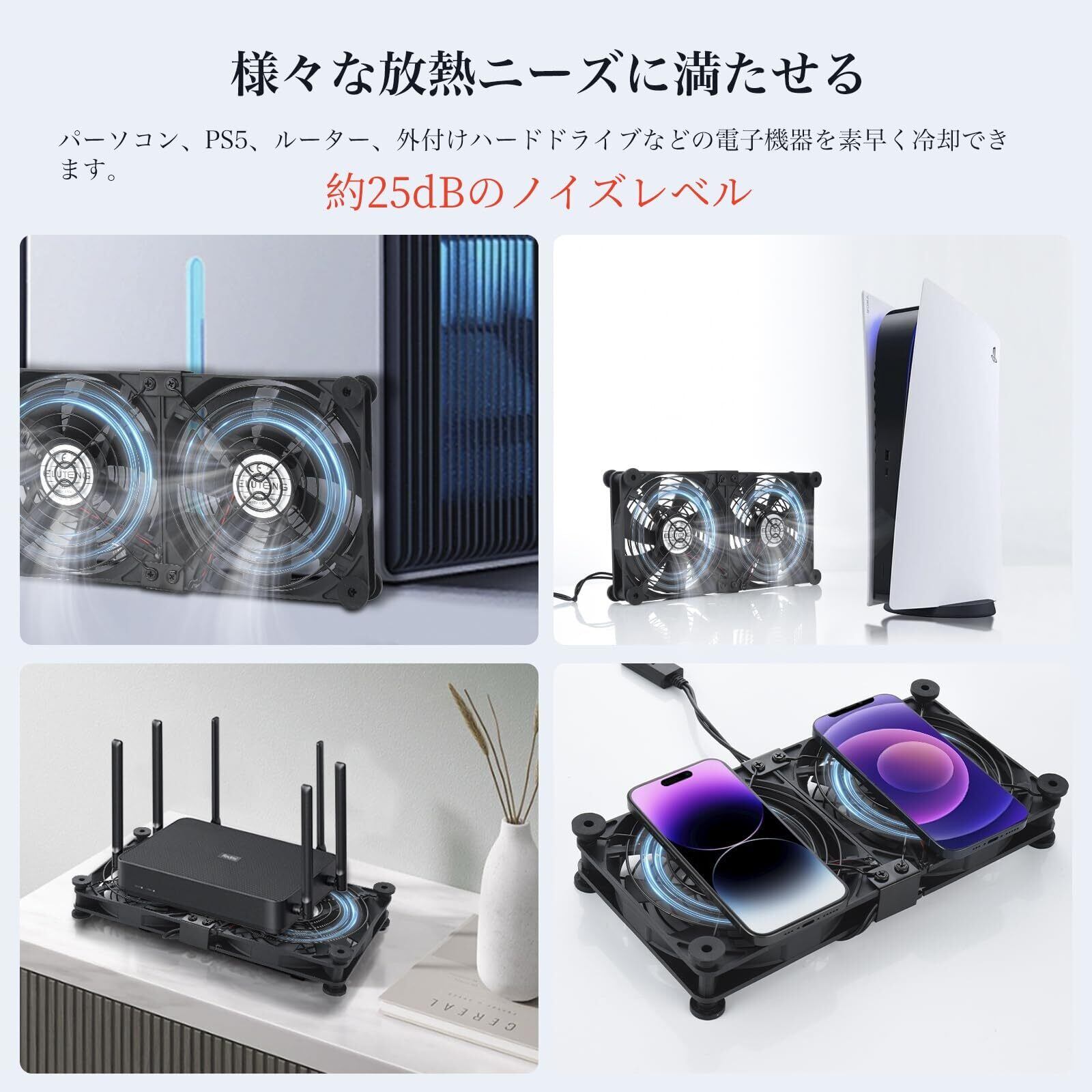 【緩衝パッド付き&安定した風量】シリコン製の緩衝パッド付き、音や振動を抑えるだけでなく、滑りにくさも兼ね備えています。7枚羽根で安定した風量を確保します。パソコン、ルーター、HDDなどの機器はもちろん、AV機器やゲーム機などの電子設備を速やかに冷却できます。