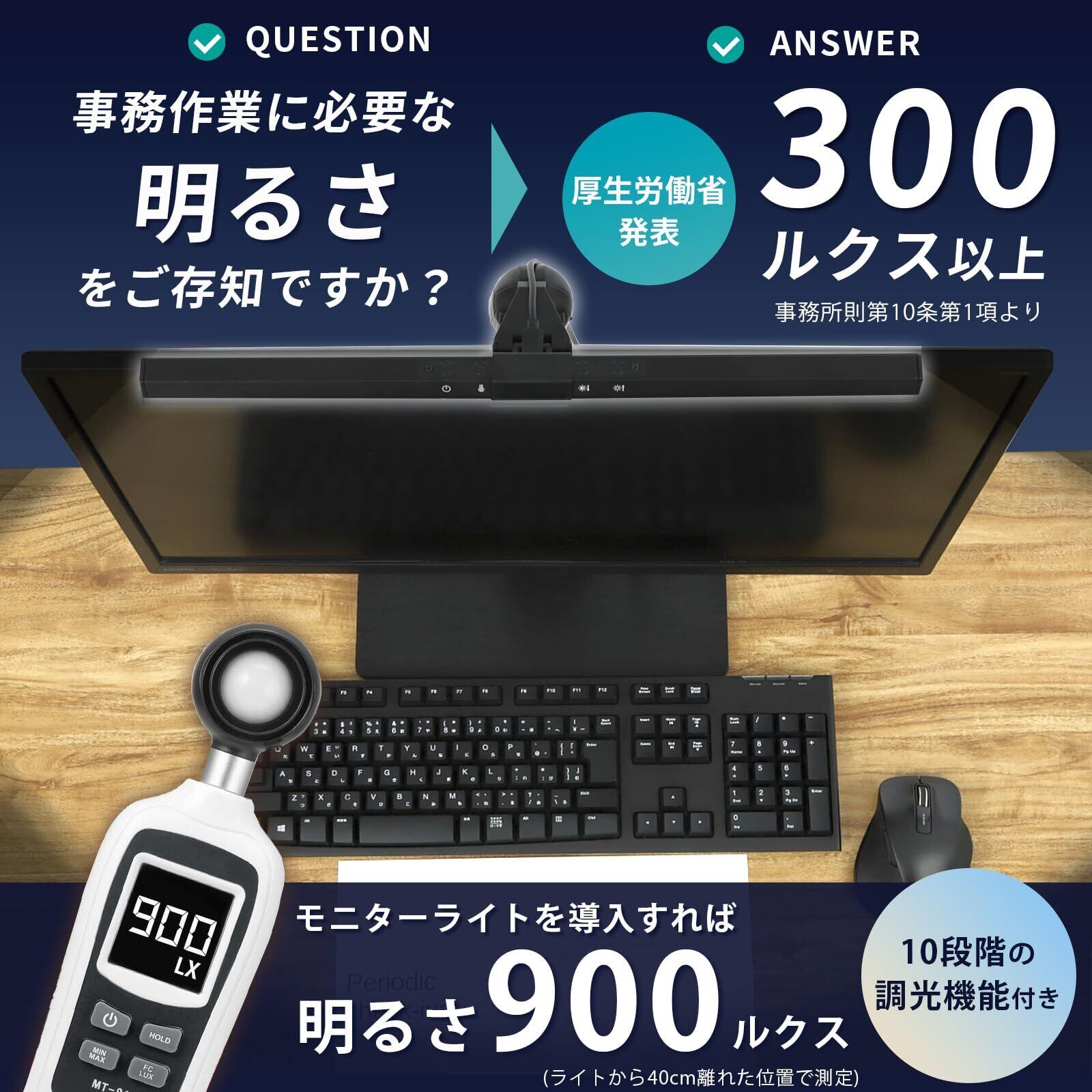 【明るさ十分】厚生労働省が定める事務作業に必要な照度基準を満たしたモニターライト。明るさや色温度の調整が可能で、あなた専用の照明環境を実現。