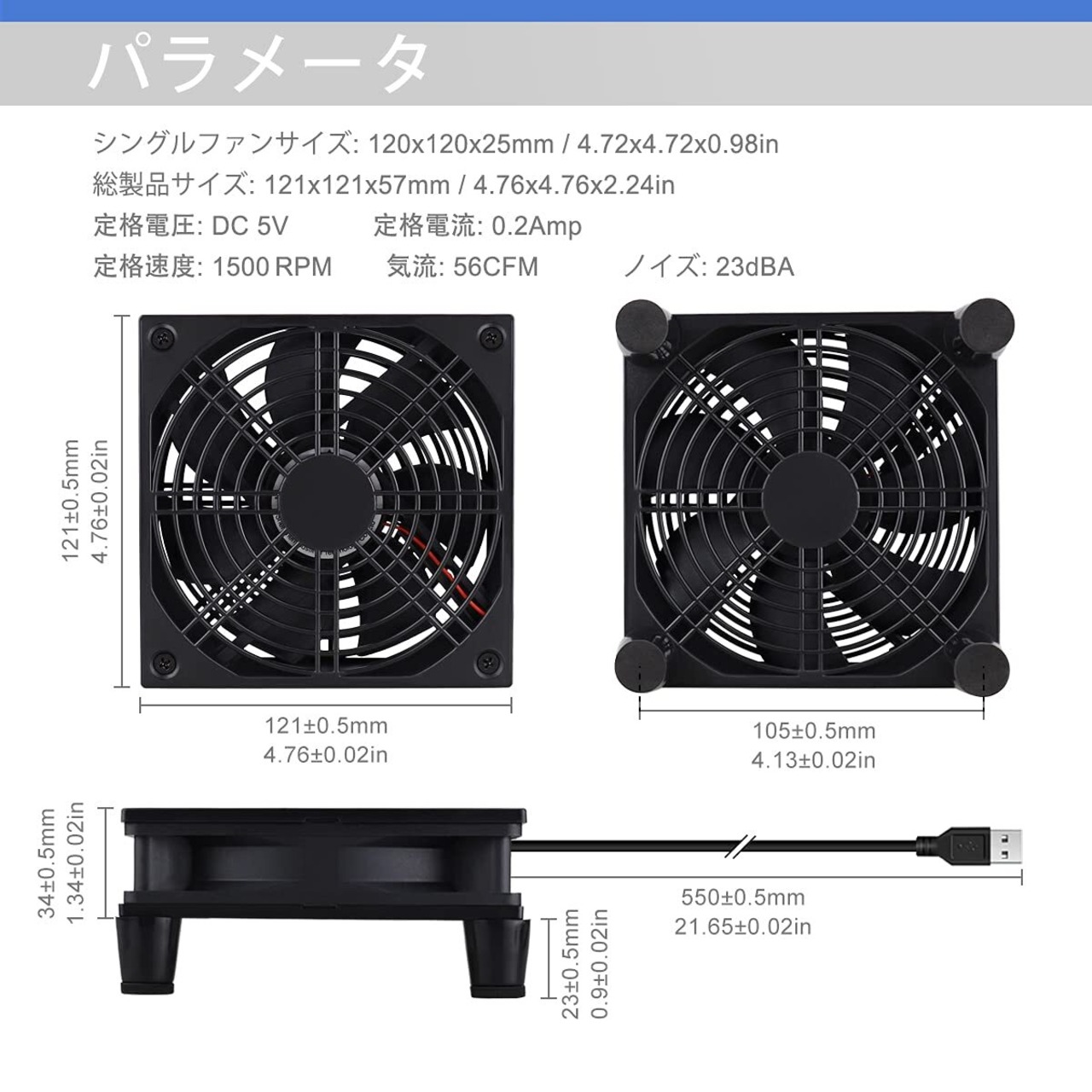 ❀120mm USBファン: 120mm (L) x120mm (W) x25mm (H) /4.72in (L) x4.72in (W) x0.98in (H); 合計:120mm (L) x120mm (W) x55mm (H) /4.72in (L) x4.72in (W) x2.17in (H)