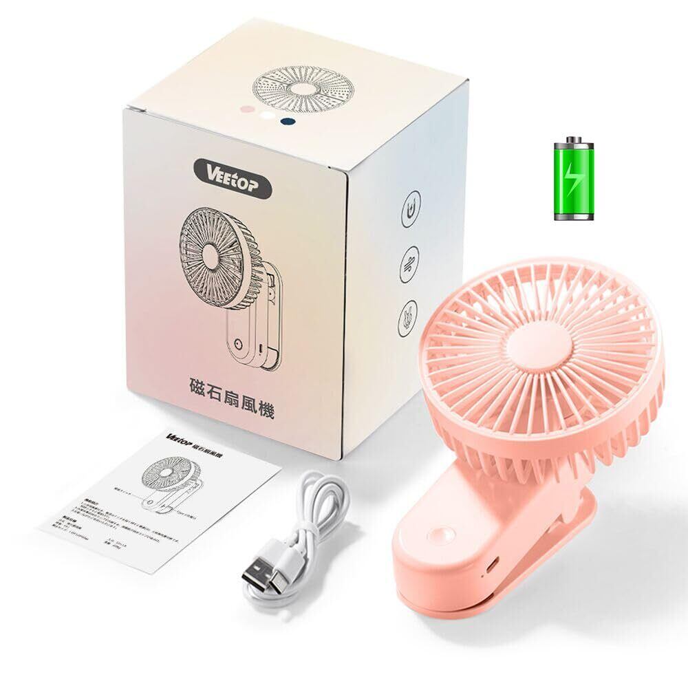 Veetop クリップ 磁石 扇風機 磁石ファン 20dB 静音 USB-TypeC充電式 コードレス パワフル送風 ミニファン 90度角度上下調整 風量3段階調節 オフィス/車用/アウトドア/キッチン 手持ち扇風機 (pink)