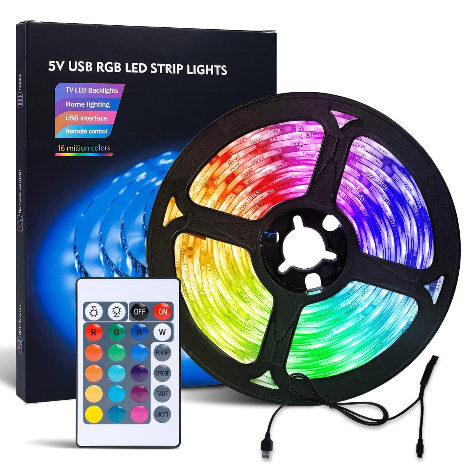 LEDテープライト RGB テレビバックライト 2M ストリップライト SMD 5050 DIY 切断可能 調光調色 間接照明 USB式 リモコン付き ロープライト 両面テープ 正面発光 イルミネーション TV背景 ムードライト 屋内装飾 ゲーム室 雰囲気作り (2M)