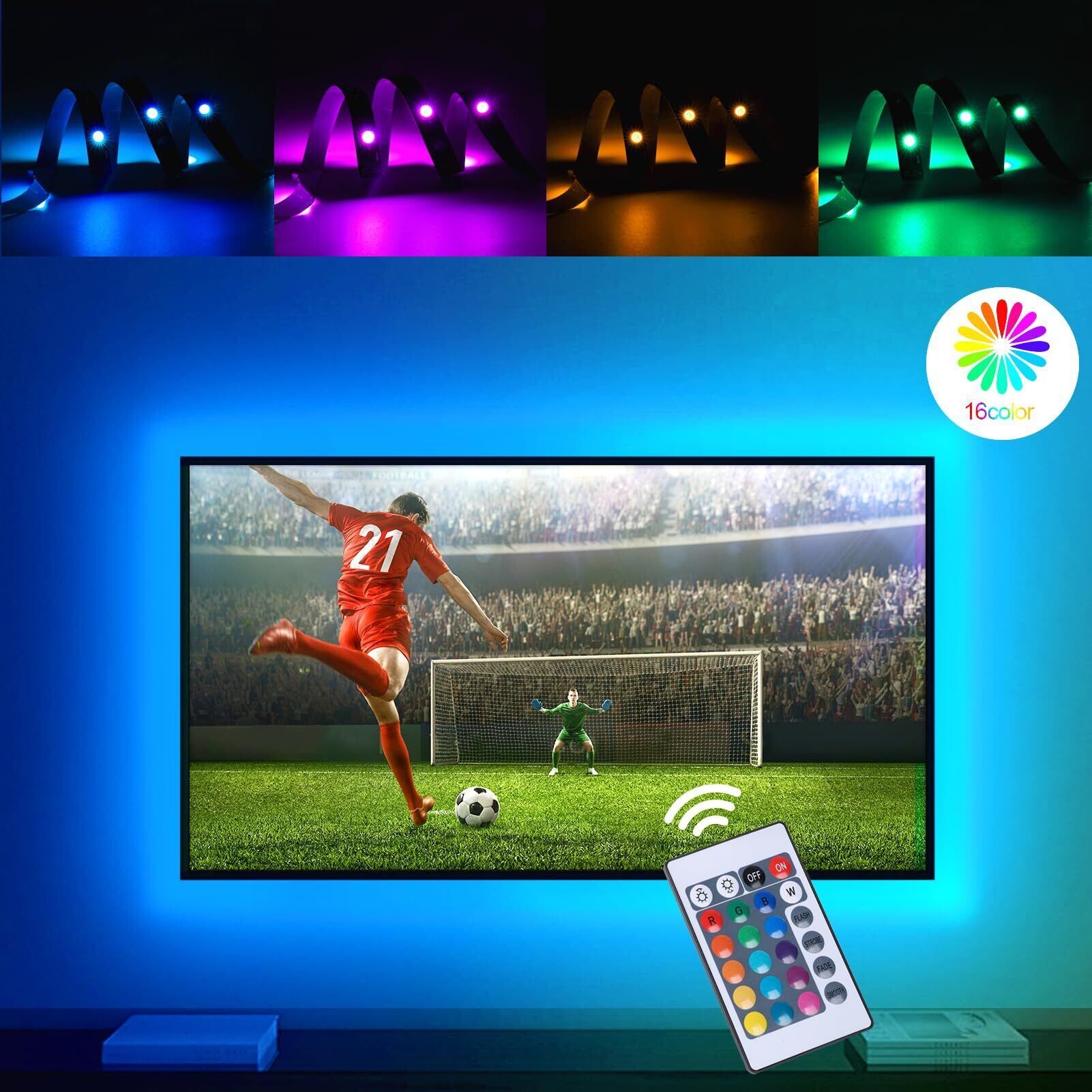 【操作簡単・自由にDIY】付属のリモコンでテープライトのオン・オフ、RGB16色選択、4モード切替、調光調色ができます。柔軟でDIYできるLED テープが切断可能でお好みの長さに切断、取り付けも簡単です。