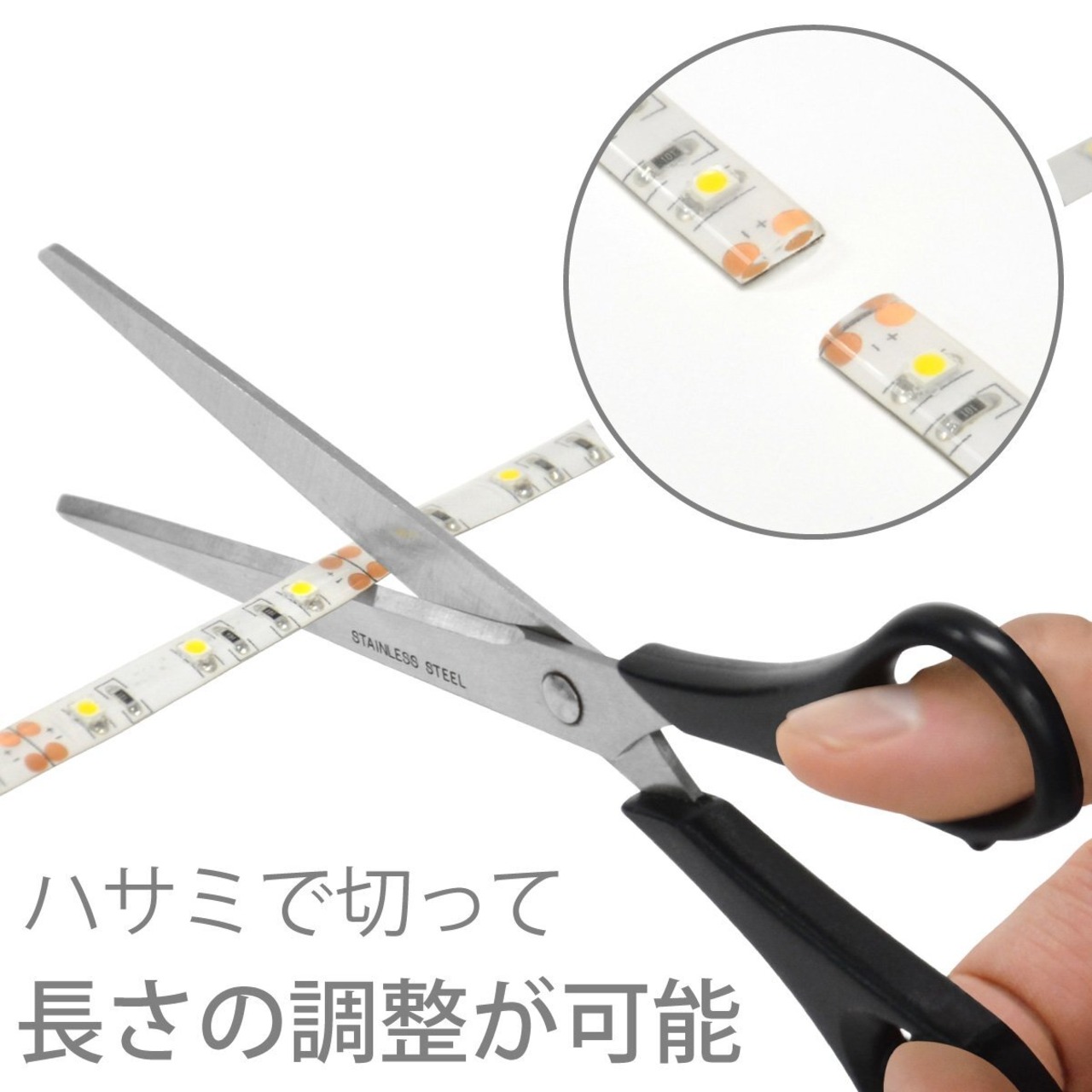 【ハサミで切ってLEDライトの長さ調整が可能】 LEDライトはハサミなどでカットすることが可能です。貼り付ける場所に合わせ長さを変えて使用することが出来ます。※カット幅は5cm単位