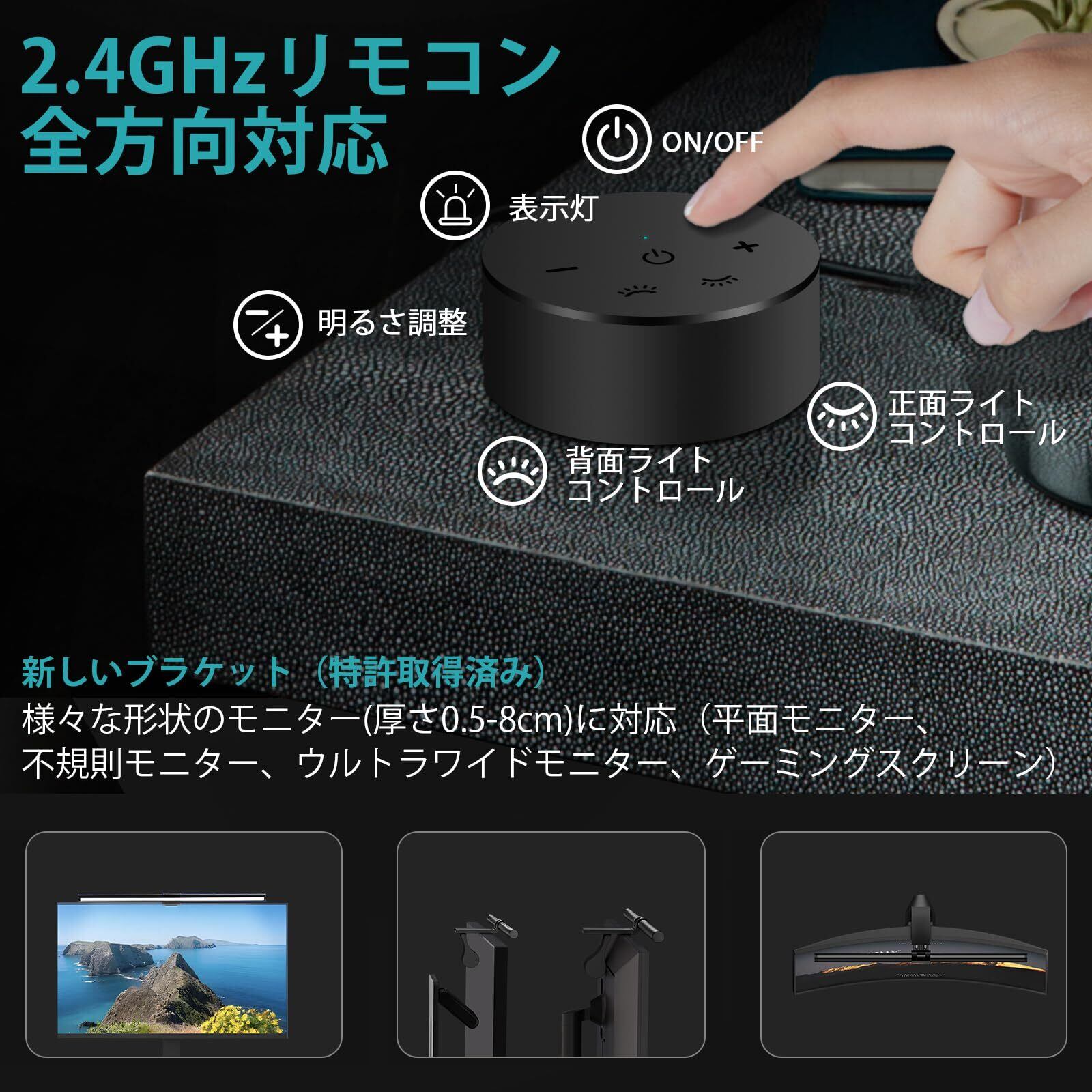 【幅広い互換性&省スペース】自社開発の新しいブラケットを搭載し、重力クリップもブラケットもスライド可能なので様々な形状のモニター(厚さ0.5-8cm)に対応します。平面モニター、曲面ディスプレイ、不規則モニター、ウルトラワイドモニター、ゲーミングスクリーンなどに適用します。モニターの上にバーライトを引っ掛けて重力クリップをスクリーンの裏側に当てて固定させることで取り付け完了。デスクのスペースを大幅に節約。