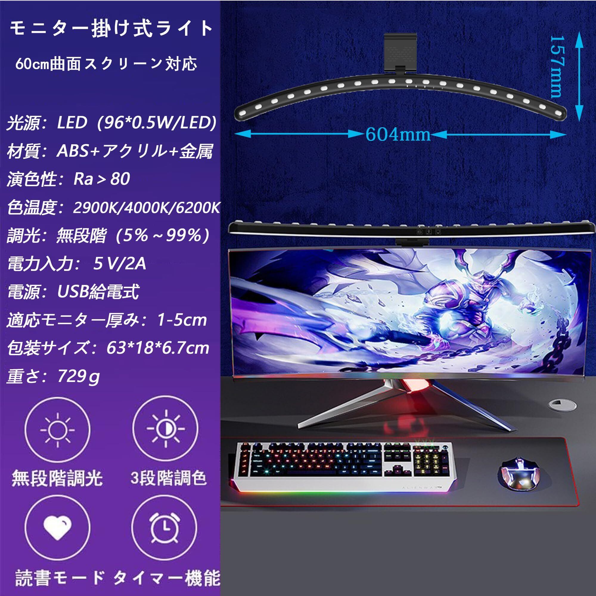 Makilight モニターライト 曲面スクリーンバー LEDデスクライト USBライト 60cm 大画面スクリーンに対応 非対称配光 モニター掛け式ライト タッチセンサー調色調光 スクリーンライト PC作業 読書 仕事 寝室 卓上に対応 USB給電