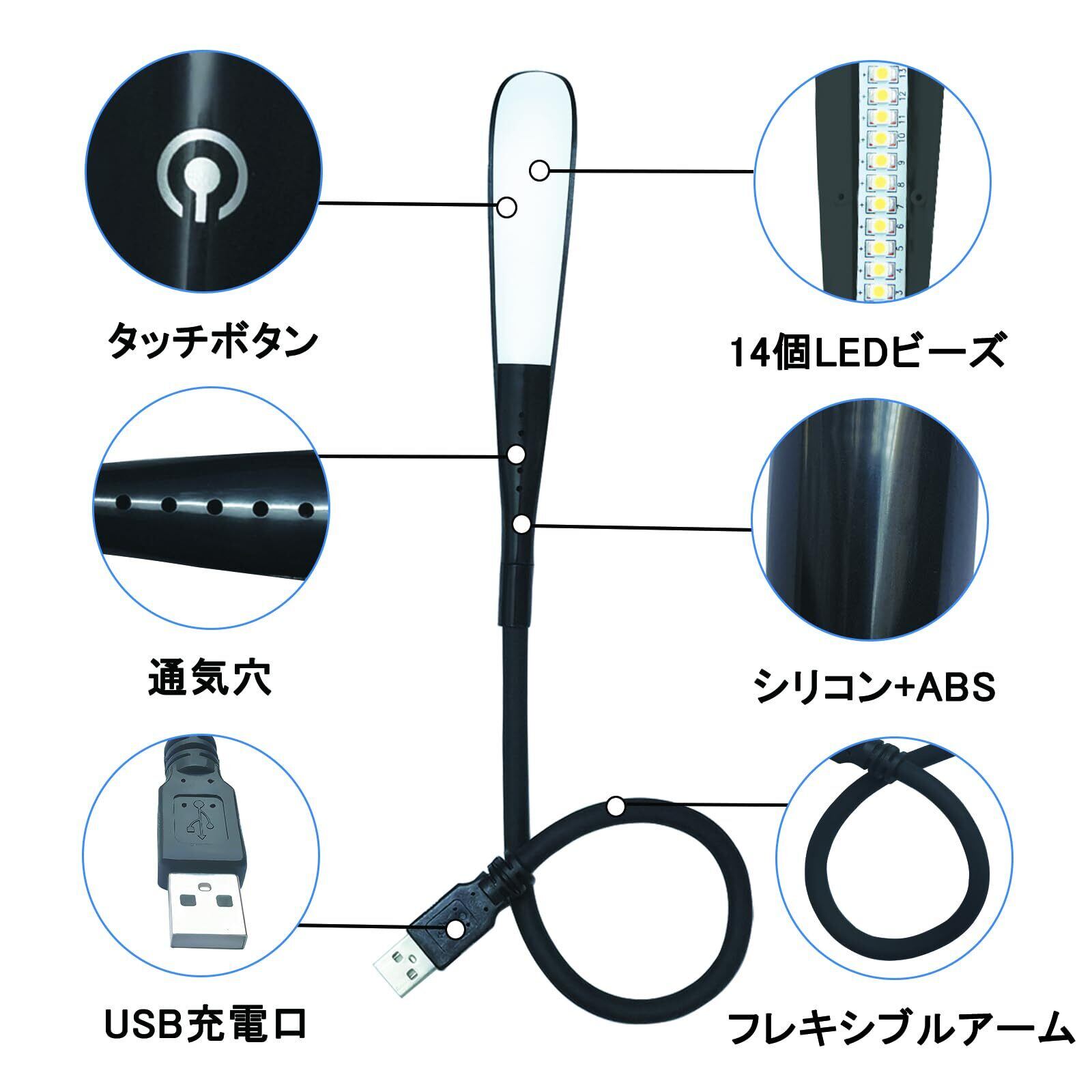 Milluten USBライト LEDランプ led読書ライト 14個LEDビーズ 3段階調光 DC5V 2.8W タッチボタン USBランプ フレキシブルタイプ 読書灯 長寿命 高輝度 ノートパソコンPC用(ブラック)