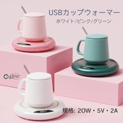 コースタータイプのUSBカップウォーマーです。ホワイト、ピンク、グリーンの3カラーをご用意いたしましたので、お好みに合わせてお選びください。