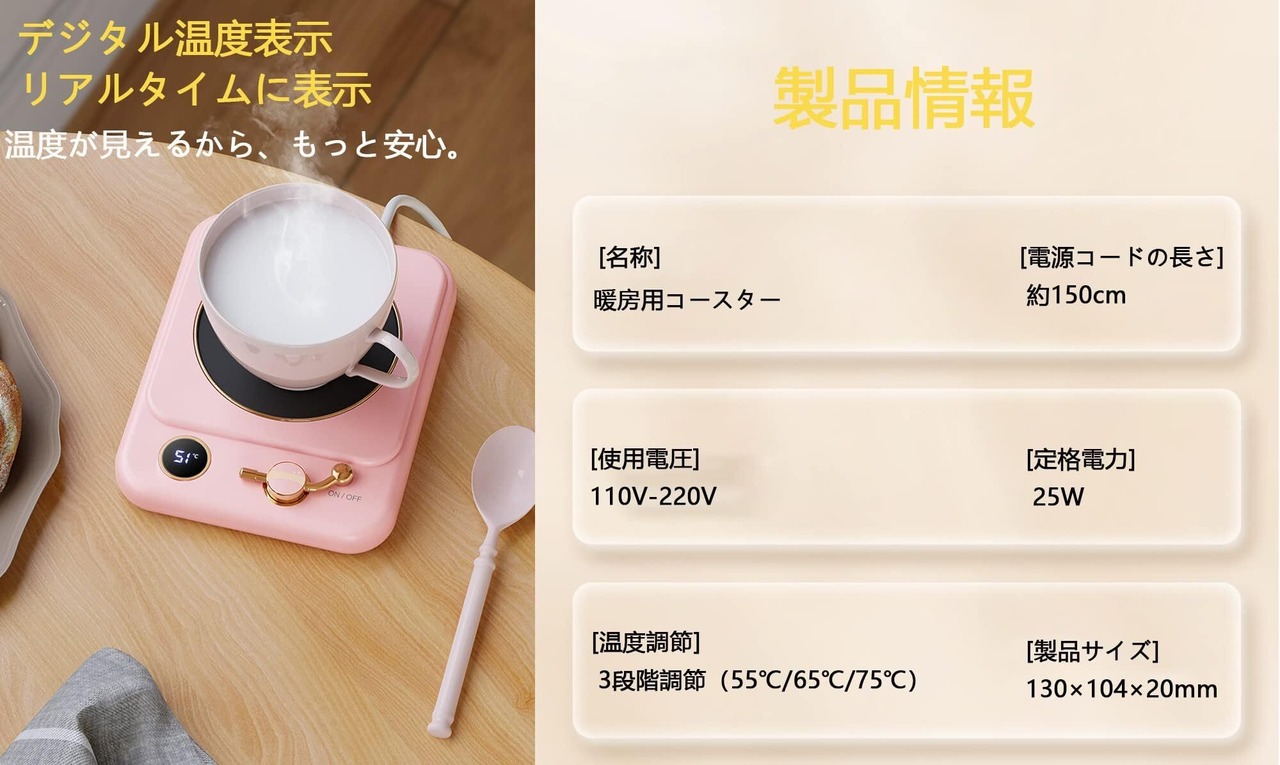 【使いやすい】電源コードを差し込み、スイッチをフリックし、コースターにカップを置くだけで、ボタンをクリックして温度をコントロールし、飲み物を好きな温度に保つことができ、フリックだけで温度を変更でき、電子レンジに行く手間を省くことができます。
