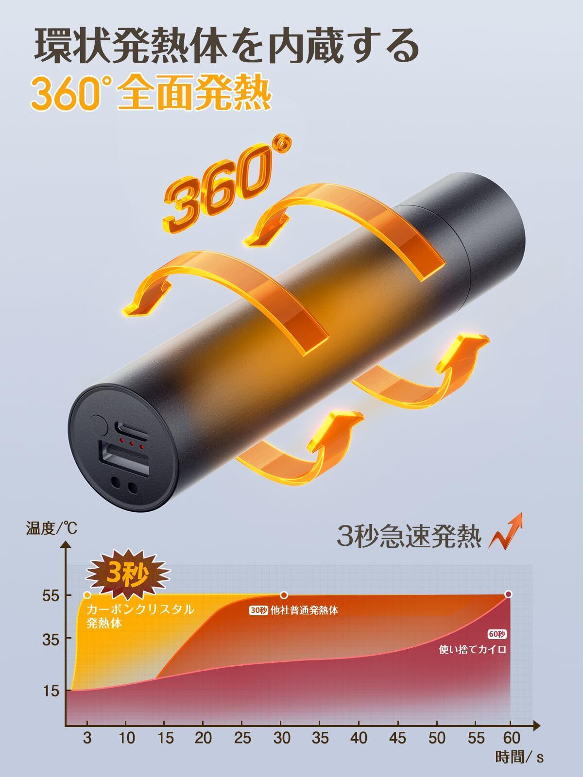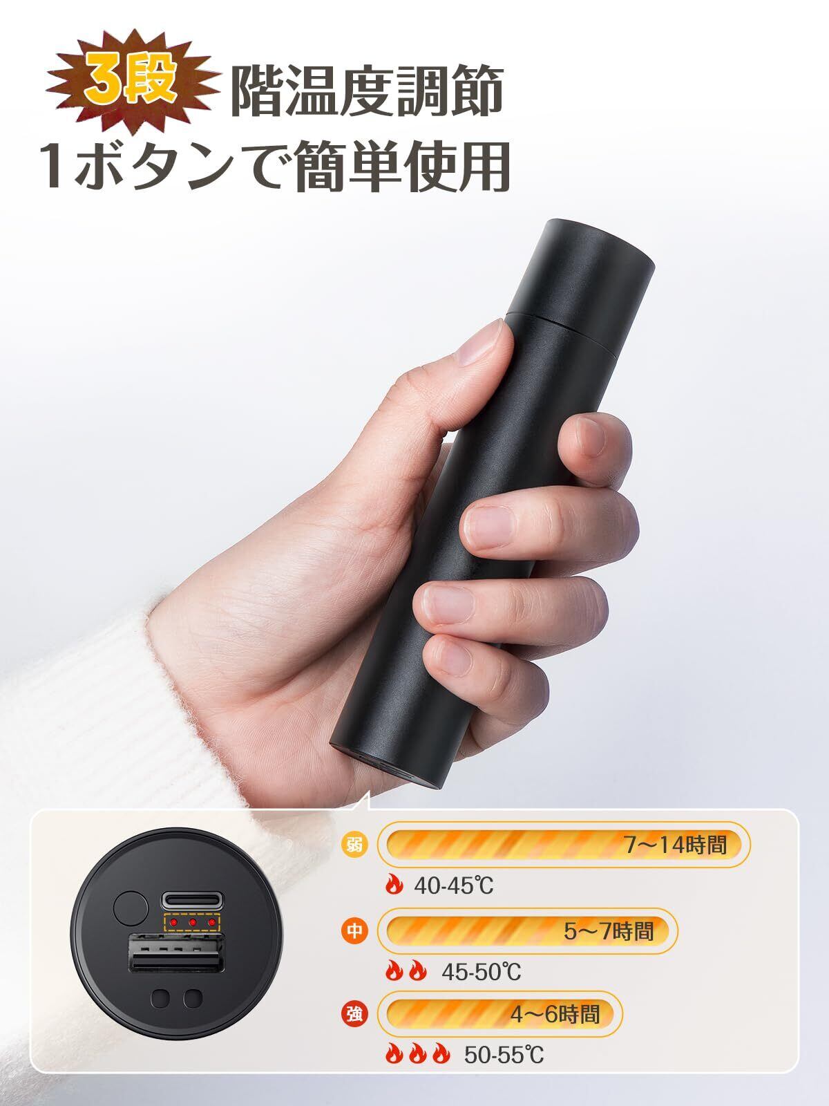 【寒い季節に向けて充電して使い捨てないカイロ】3秒で急速発熱ができ、寒さに堪える真冬でも、指先の冷えを感じた時にスイッチONですぐにホカホカ!3階段温度調できる、 低温モード(40〜45℃、使用時間6~8H )・中温モード(45〜50℃、使用時間3~6H)・高温モード(50〜55℃、使用時間2~3H)を周囲の気温に応じます。USB充電でくり返し使用できるのでエコで経済的。ゴミが発生せず、使い捨てカイロより手元が暖かくて便利に使えます。