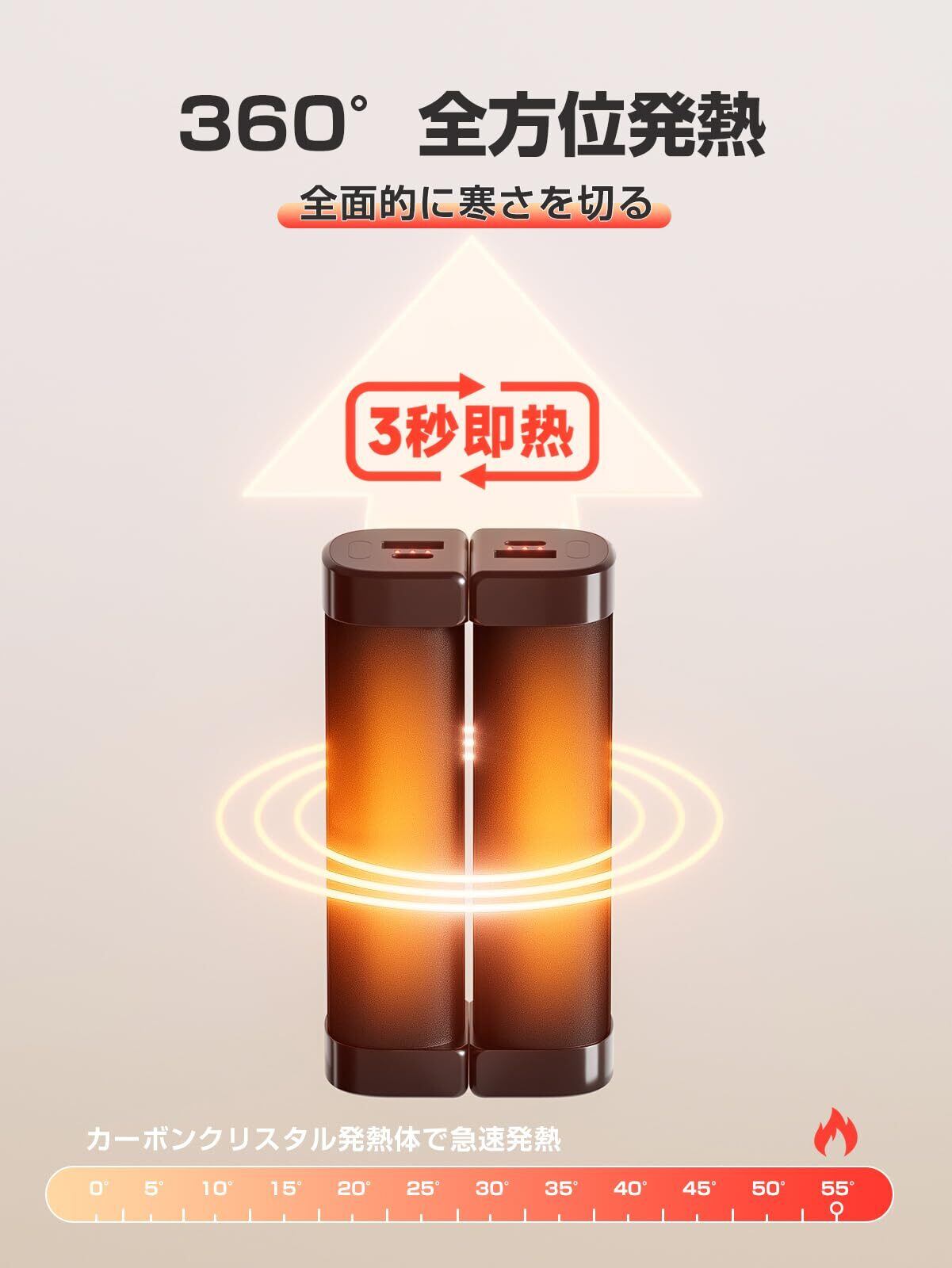 【3秒急速発熱✚360°全面発熱】この充電式カイロは、電源を入れてわずか3秒で温かさを感じられます。真冬の厳しい寒さや指先の冷えが気になる時でも、すぐに暖かさが広がり、快適に過ごせます。カイロ全体に360°の発熱体を配置し、急速かつ連続的に温めることが可能です。さらに、繰り返し充電して使えるため、ゴミが出ず環境にも優しい設計となっております。使い捨てカイロよりも高い保温性を持ち、手元をしっかりと暖めてくれるため、外出時やアウトドアでも大活躍間違いなしです。