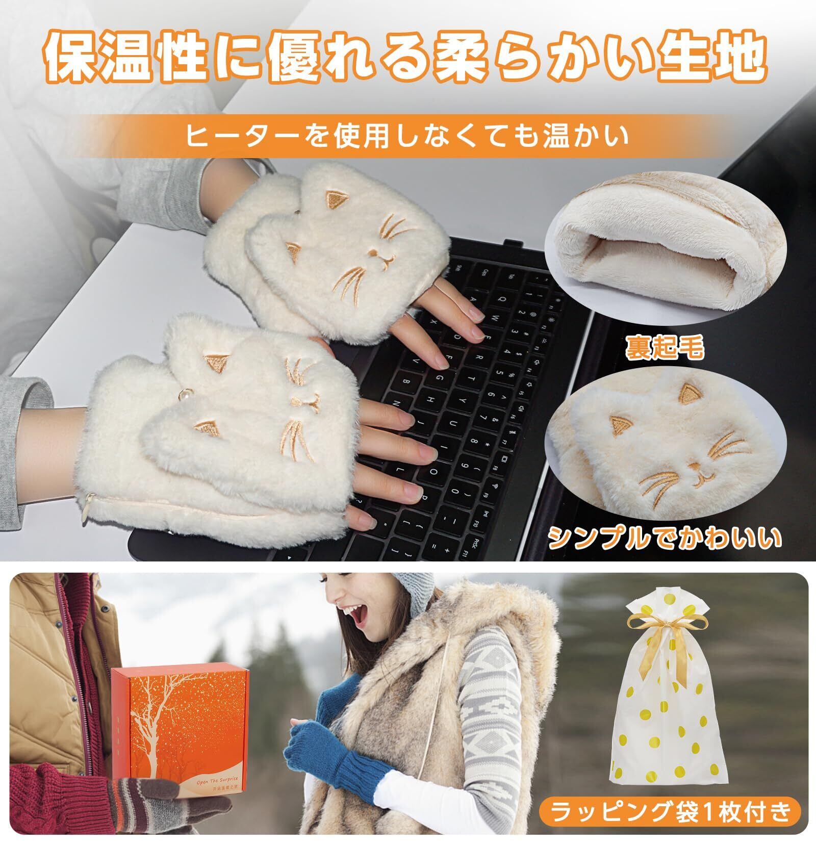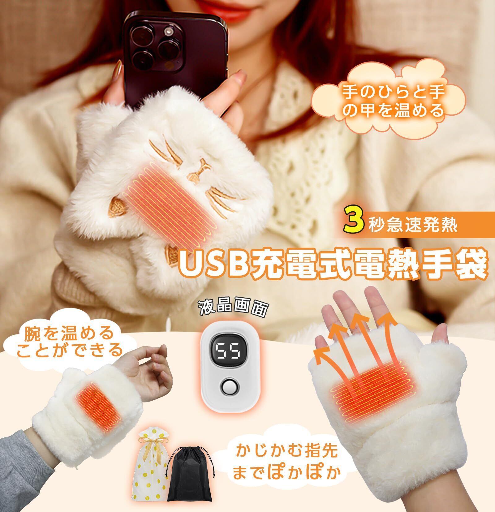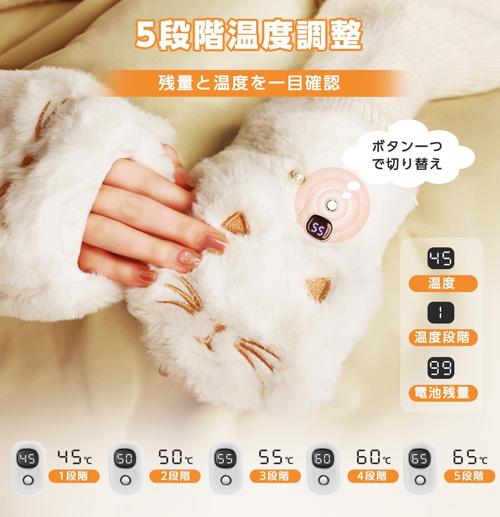 ZenCT 電熱グローブ 電熱手袋 USB充電式 ヒーター手袋 猫柄 3000mAh 5段温度調整 4.5時間連続使用 液晶画面 指なし カバー付き あったか ヒーターグローブ 防寒対策 ハンドウォーマー パソコン作業 デスクワーク 通勤 通学 プレゼント 女性 レディース 猫グッズ 猫モチーフ CT229