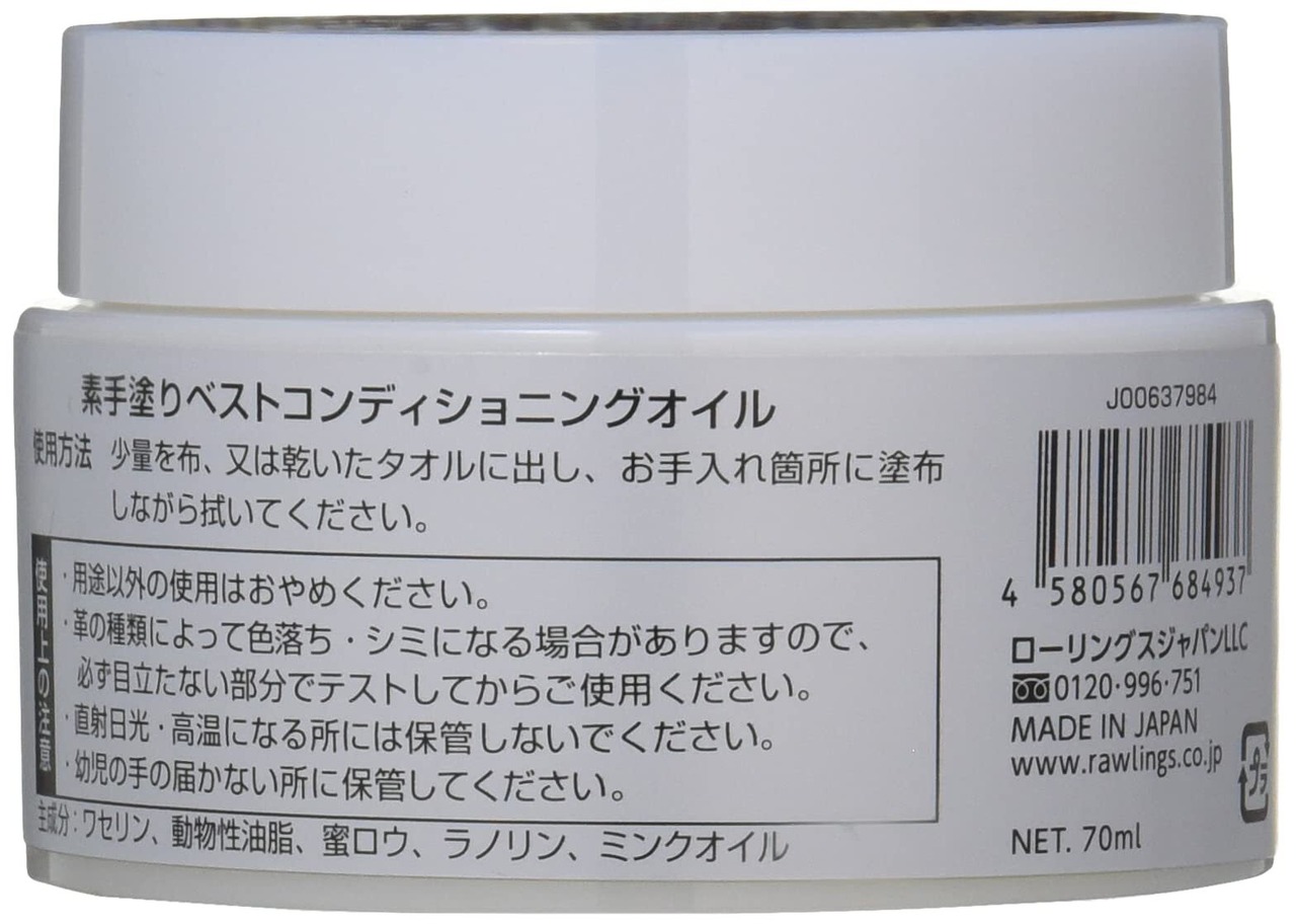 【素材】ワセリン、動物性油脂、蜜ロウ、ラノリン、ミンクオイル【製造】日本製