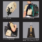 【特徴】グラブ内の湿気を取りながら型崩れさせずグラブを保型。グラブ固定のバックル付きベルト(ベルト長さ調整可能)。バック内でグラブの型崩れを起こさせない様、吊り下げ用カラビナで外装着が可能。