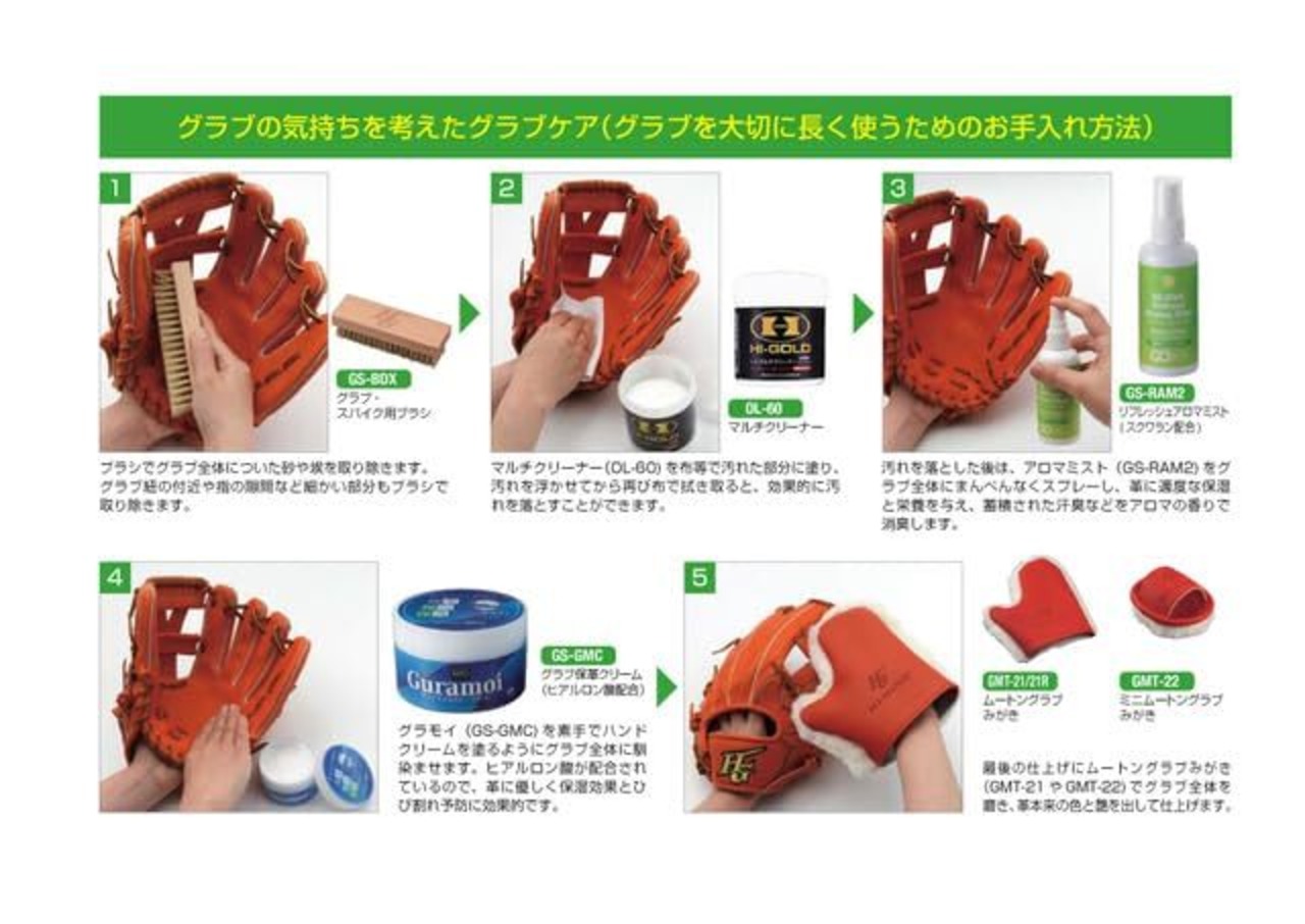 グラブ、シューズ・スパイク、バッグなど合皮製品、エナメル製品可