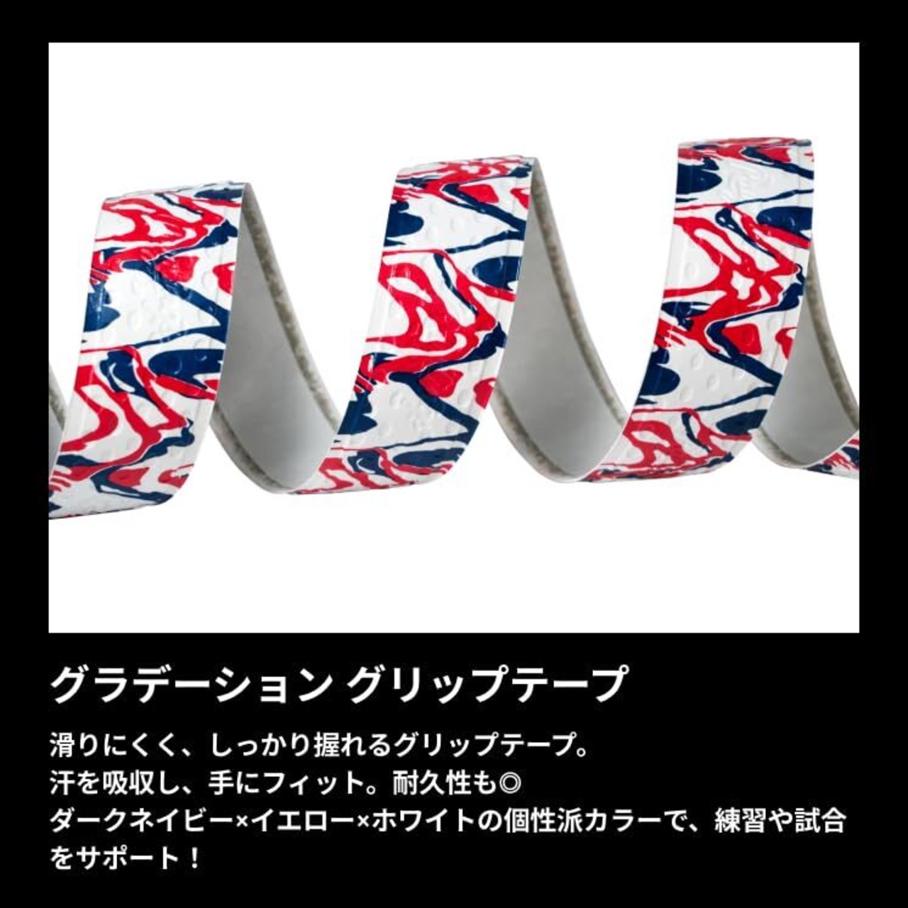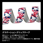 【特徴】テープ表面の凸凹加工によりグリップ力を高め、野球・ソフトボールバットのグリップの向上に最適! 汗を吸収して滑りにくく、適度な弾力性を持ちながら優れた耐久性! グラデーション グリップテープ