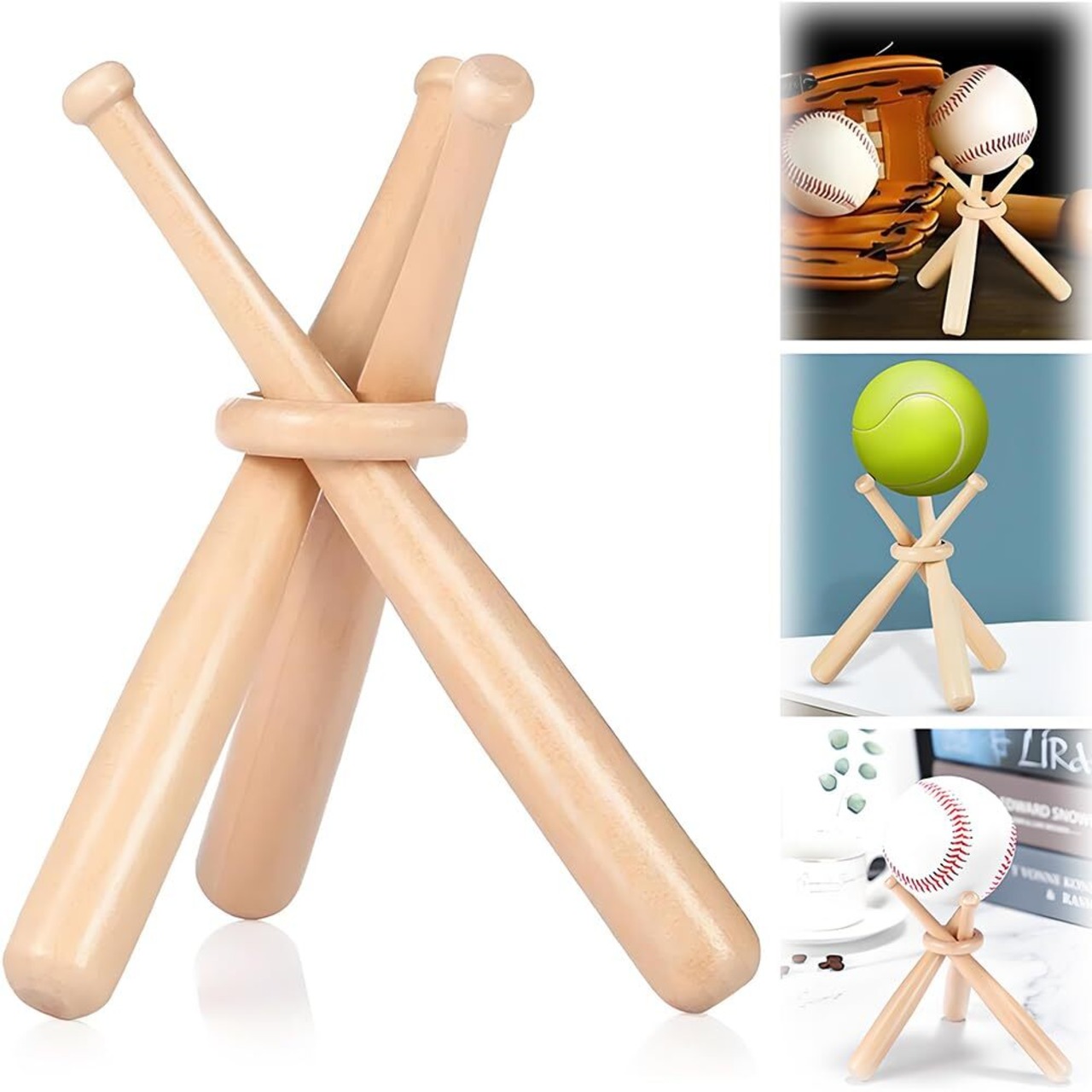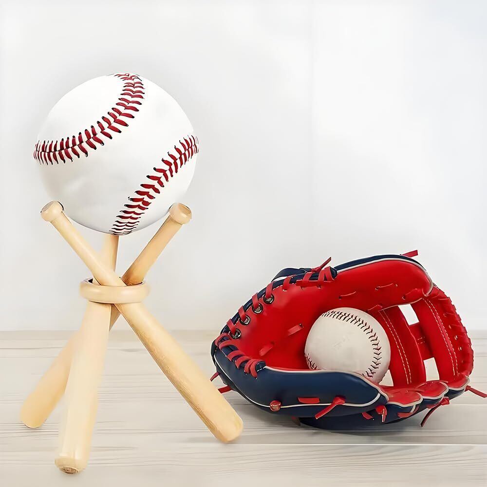1.【野球ボールを美しくディスプレイ】サインボールや記念球をキレイに飾れる野球ディスプレイスタンドです。三本の木製ミニチュアバットがリングで束ねられ、全方向からボールが見える設計。ホームランボールや記念球の保存・展示にぴったりです