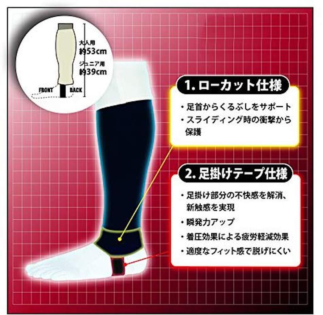 ローカット使用で、足首からくるぶしをサポートしスライディング時の衝撃から保護します。