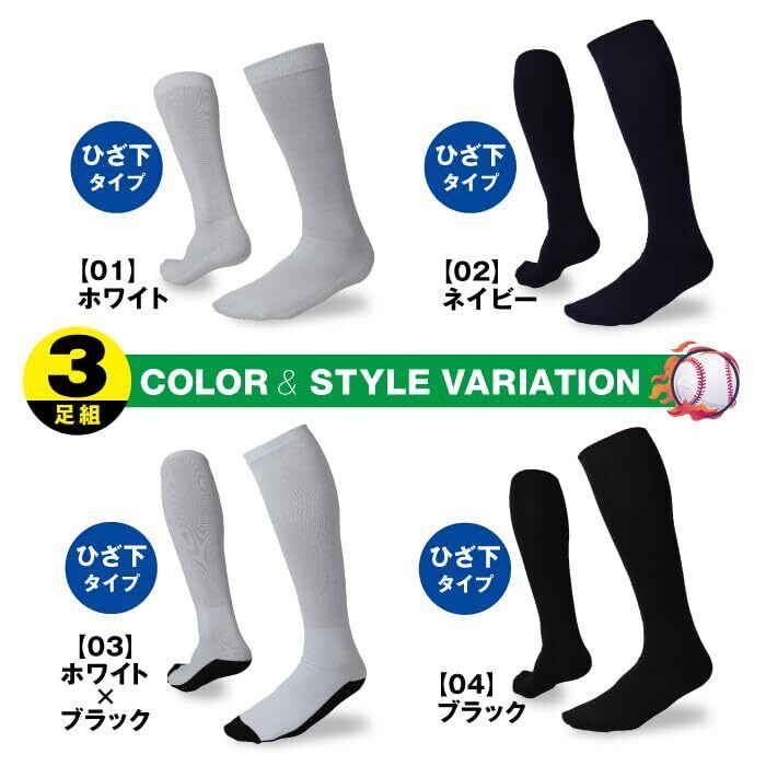 [エー・ディー・ワン] 野球ソックス 3P スポーツソックス アンダーソックス ストッキング 3足組み ADB-01-03