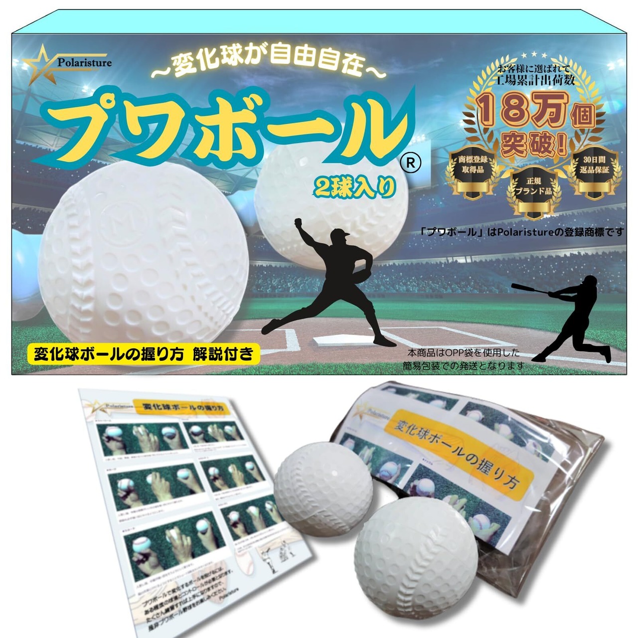 Polaristure プワボール プワボール野球 変化球 ボール 変化球ボールの握り方解説付き 2個入り