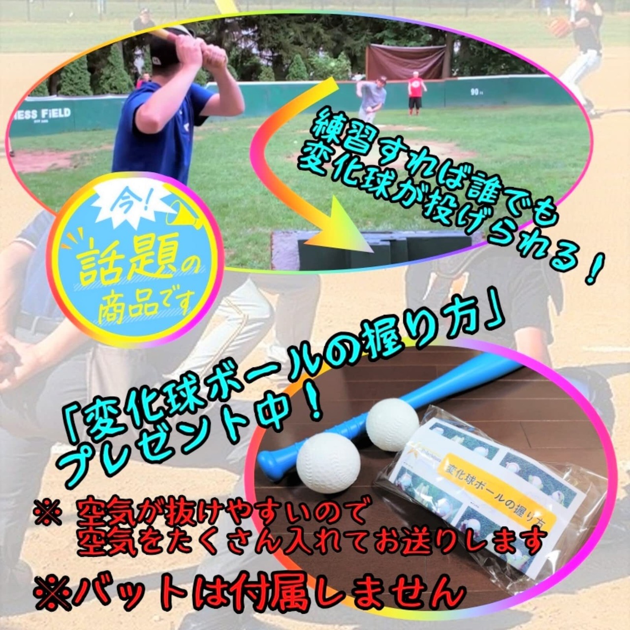 ■SNSや動画サイトで話題の変化球が投げられるボールです