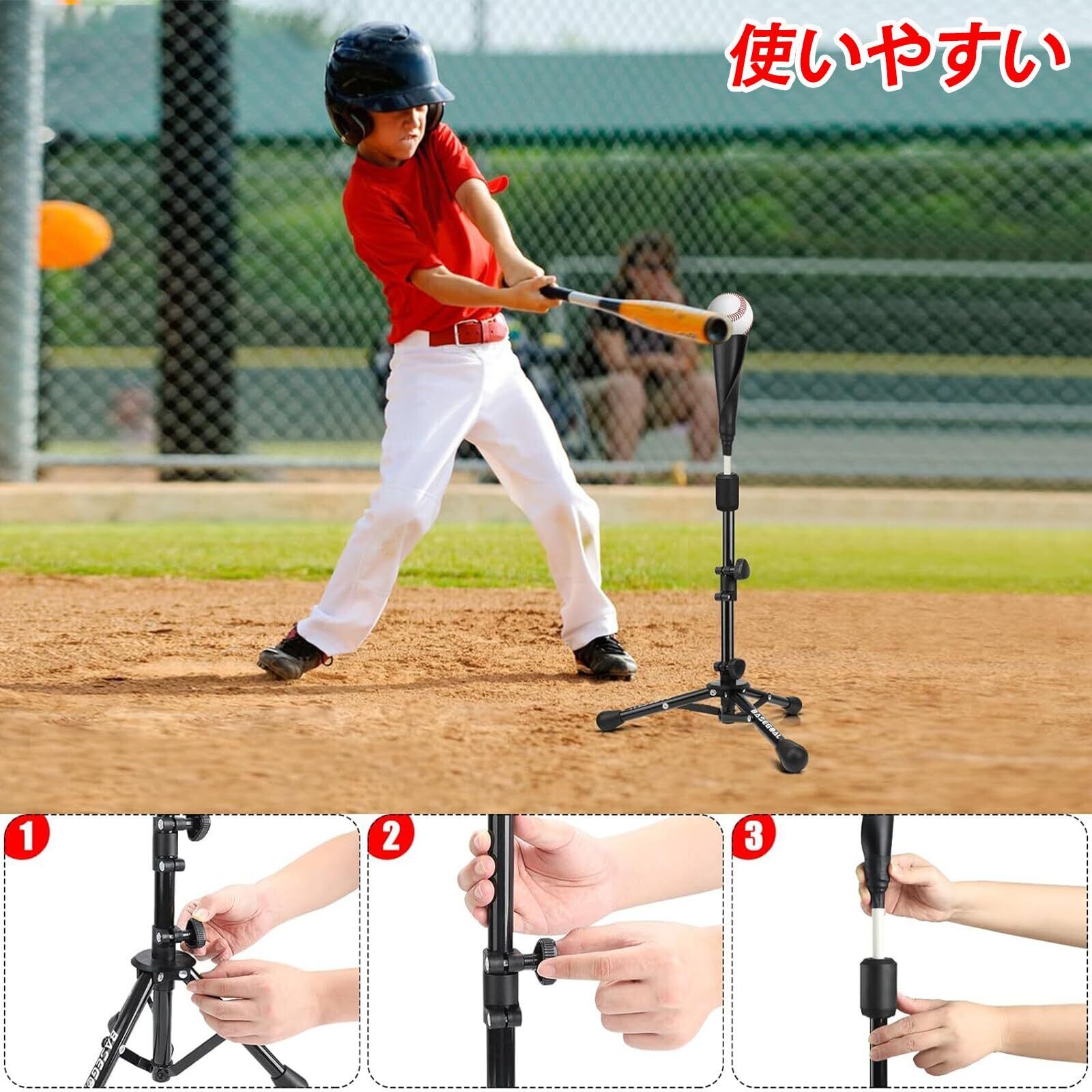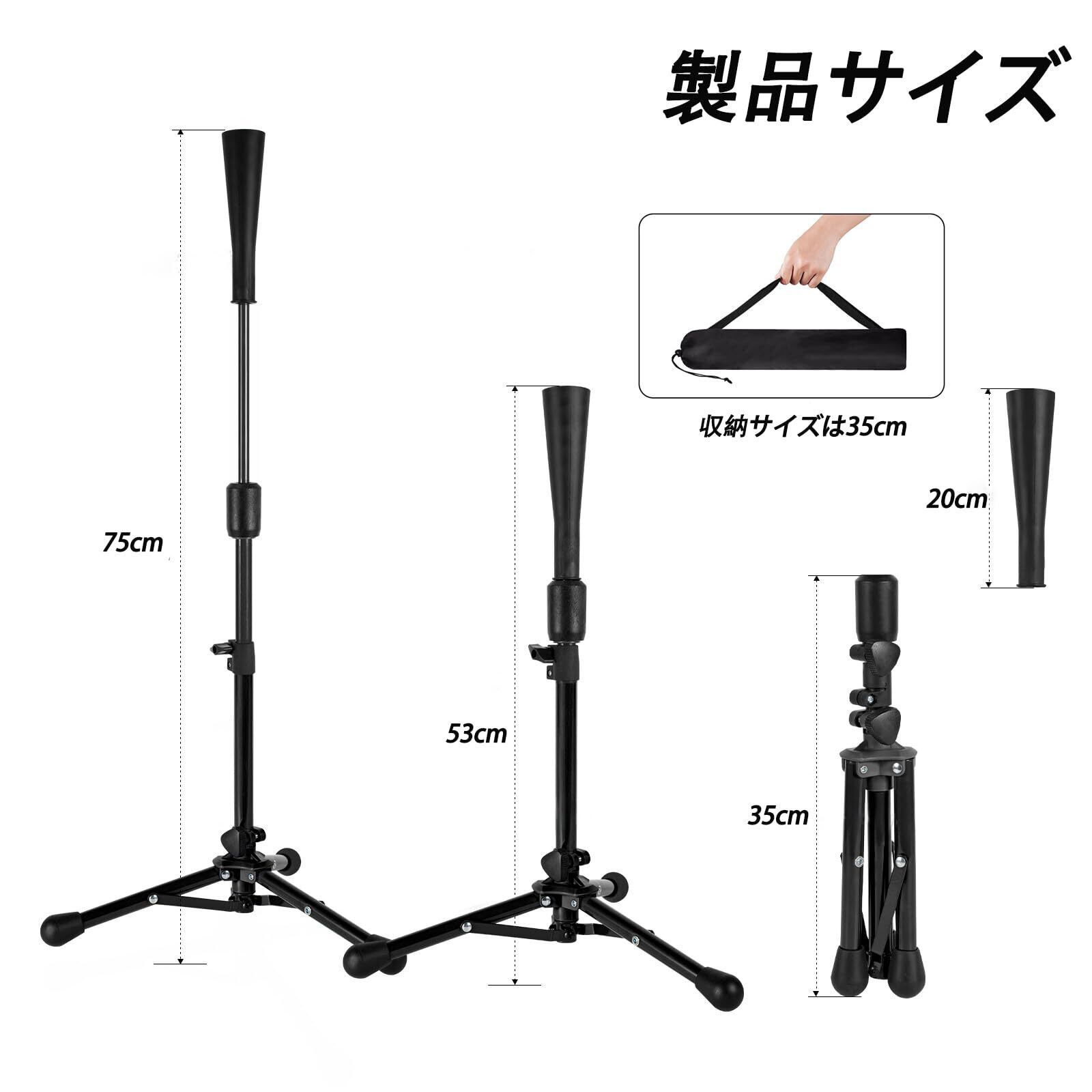 AUTAKI ティーバッティング 子供 バッティングティー ボール置きティー高さ53-76cm調整 置きティー 野球 バッティングティー スタンド 野球ティースタンド置きティー 練習 打撃 野球 軟式 硬式 ティー バッティング スタンド ティースタンド野球 レジャー ファミリースポーツ 少年野球 ソフトボール ソフトラバー 素振り トレーニング 収納袋付き 三脚タイプ