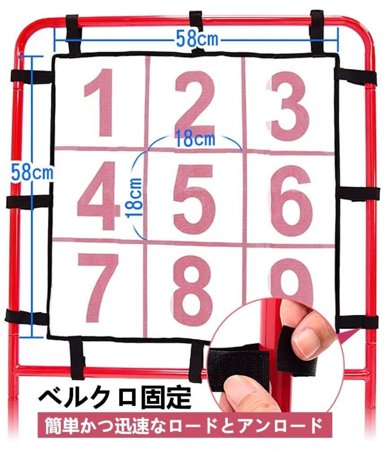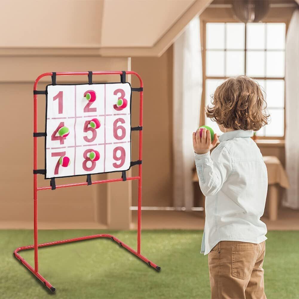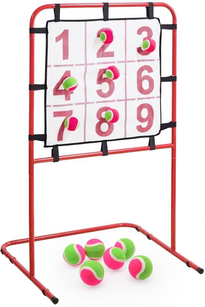 UYTON ストラックアウト ピッチング 練習(12球付) 投球練習 マジックナイン ボール(高さ123~146cm) 投げゲーム 自主練習 自宅 屋内 屋外 投球練習 屋内 屋外練習 スチールベース エンジョイファミリー ストライクピッチング ストライクアウト マジックナイン 組立簡単 高さ調節可能 (レッド)