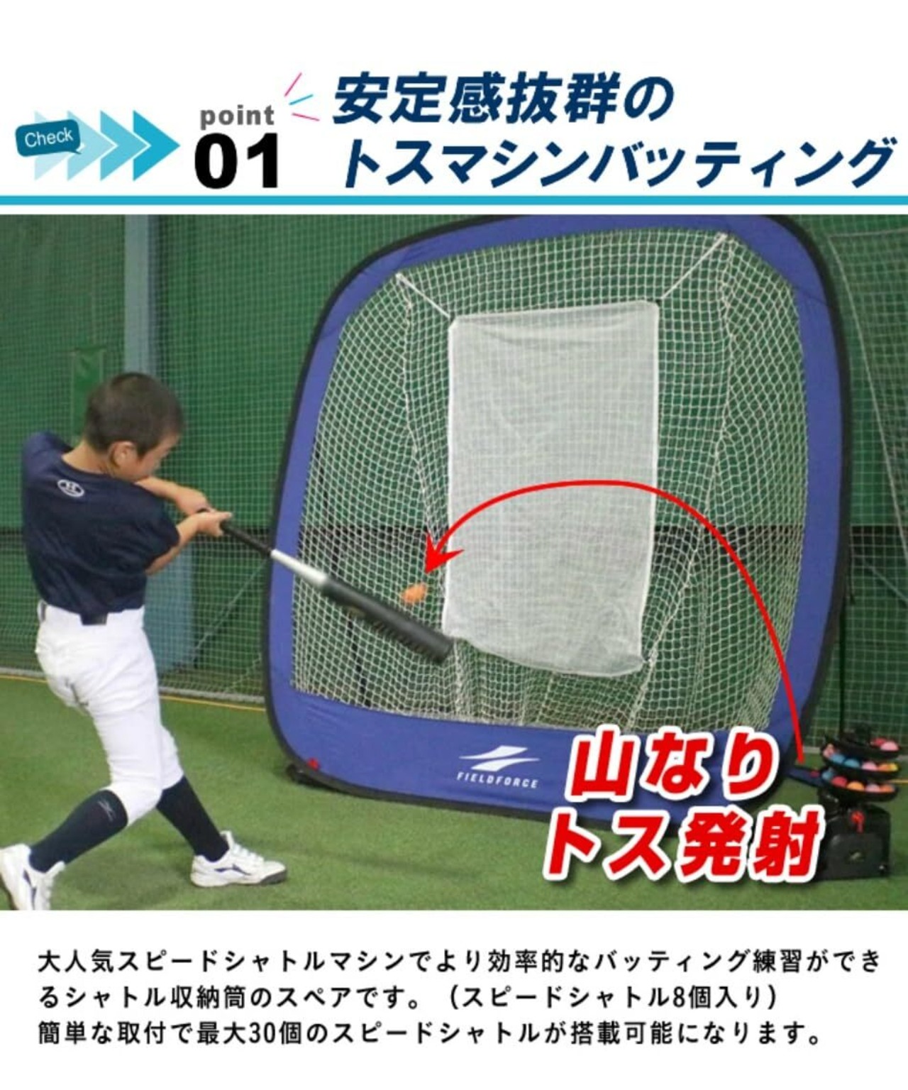 [フィールドフォース] トスマシン ACアダプタ+ミートボール10個付き FTM-401 + FACAD-101 4段階角度調整 FIELDFORCE 野球 山なりトス発射 室内トレーニング