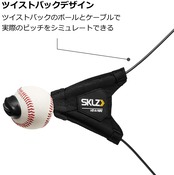 実際の投球をシミュレートし、フィールドや自宅で何時間でも途切れることなくスイング練習ができる、ツイストバック式ボールとケーブルのデザイン。
