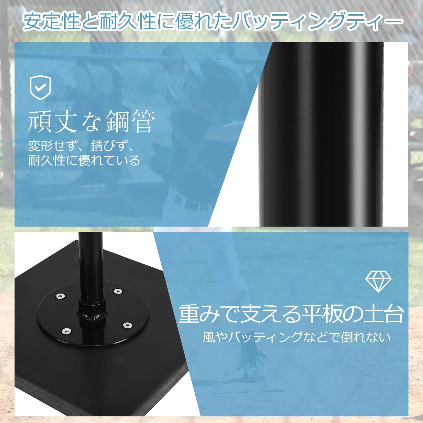 【耐久性のあるフレーム】このバッティングティーは高品質のラバートッパーと頑丈な平板タイプを持ち、長期的なバッティングトレーニングをします。しっかりとしたベースは安定性を増し、バッティングティーが倒れにくくなります。
