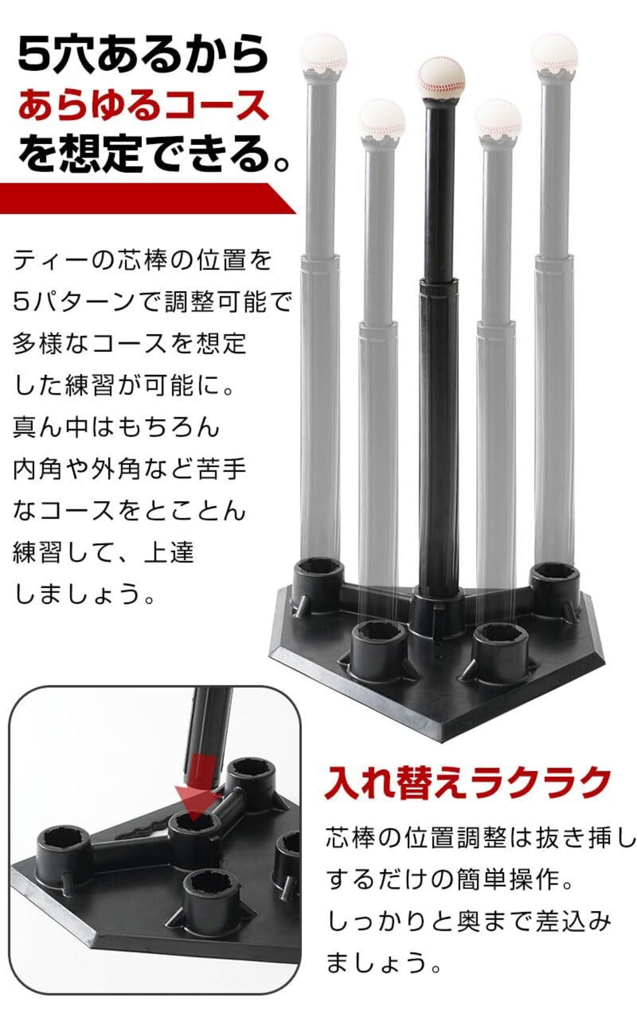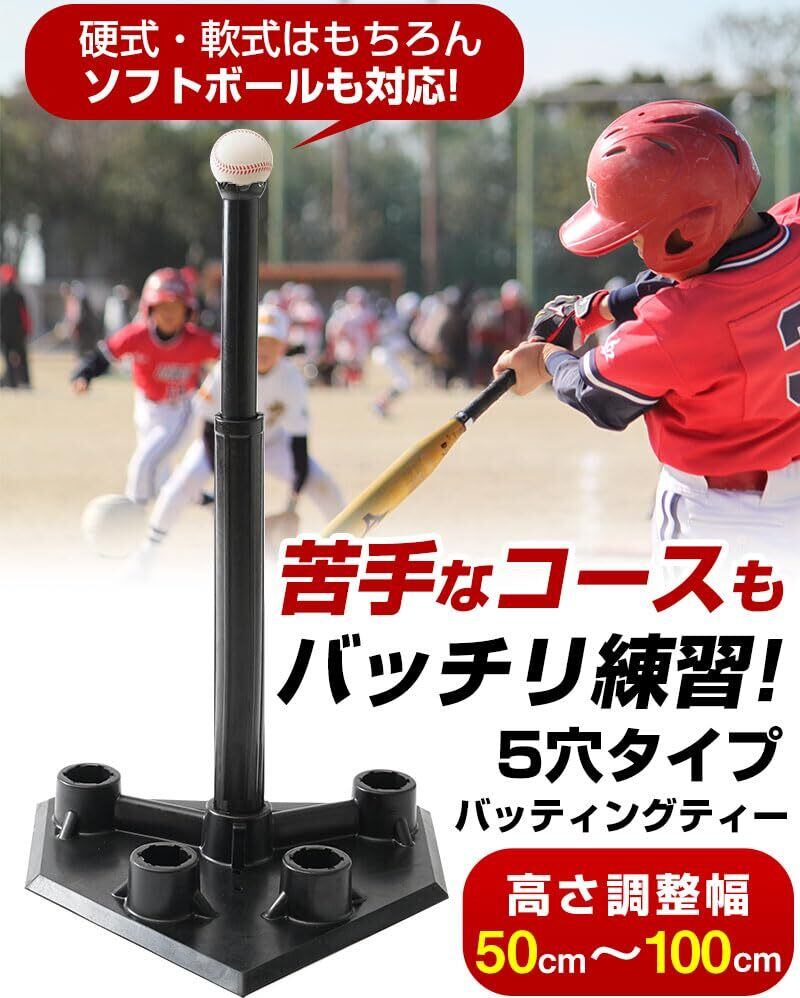 野球 バッティングティー(5穴タイプ) 硬式 軟式 ソフトボール 野球練習用 高さ調整可能