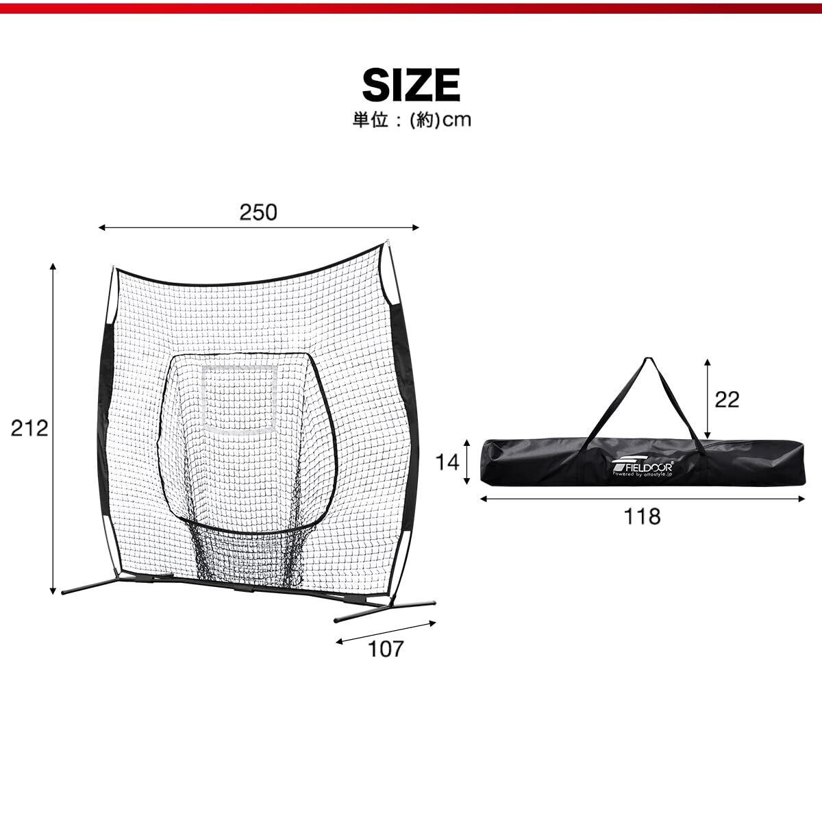 FIELDOOR バッティング練習用ネット 幅250cmx高さ212cmx奥行き107cm 折りたたみ 簡単組立 野球練習ネット 軟式 硬式 対応 ペグ付 公園 庭 屋内 家庭用 トレーニング トレーナー ピッチング 自主練習
