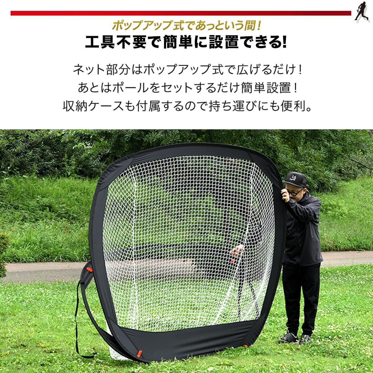 FIELDOOR バッティング練習ネット ポップアップ式 194cm×110cm×185cm 折りたたみ 簡単組立 工具不要 バッティングネット 野球練習ネット 軟式 対応 ペグ付 公園 庭 屋内 家庭用 トレーニング トレーナー ピッチング 自主練習