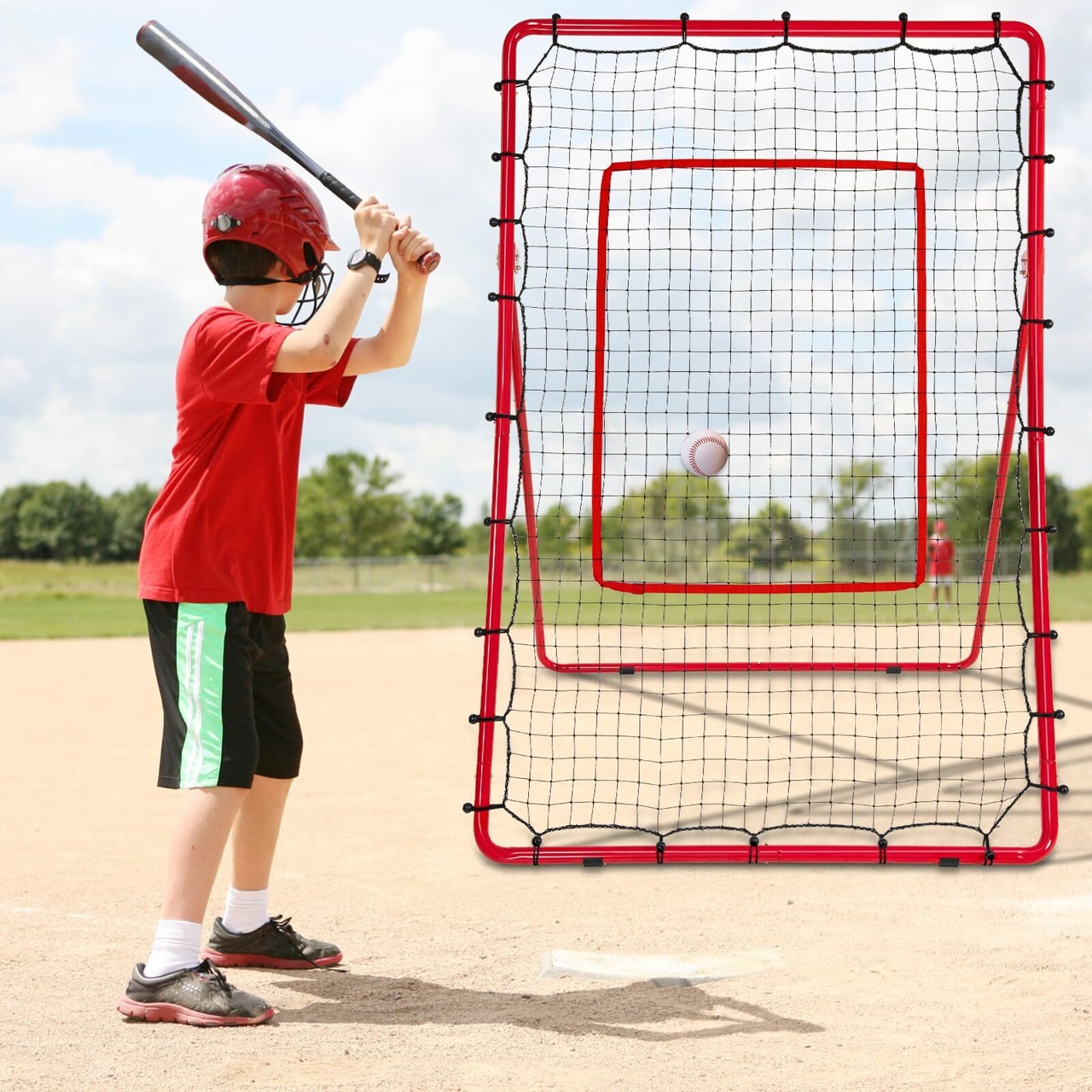 AKOZLIN リバウンドネット 5 段階の角度調整可能 練習用ネット 折り畳み式 壁打ちネット 練習用ターゲット&収納袋付き 120×183cm 室内外兼用 ソフトボール・野球・ホッケー ・バレーボール・バドミントン適用 レッド