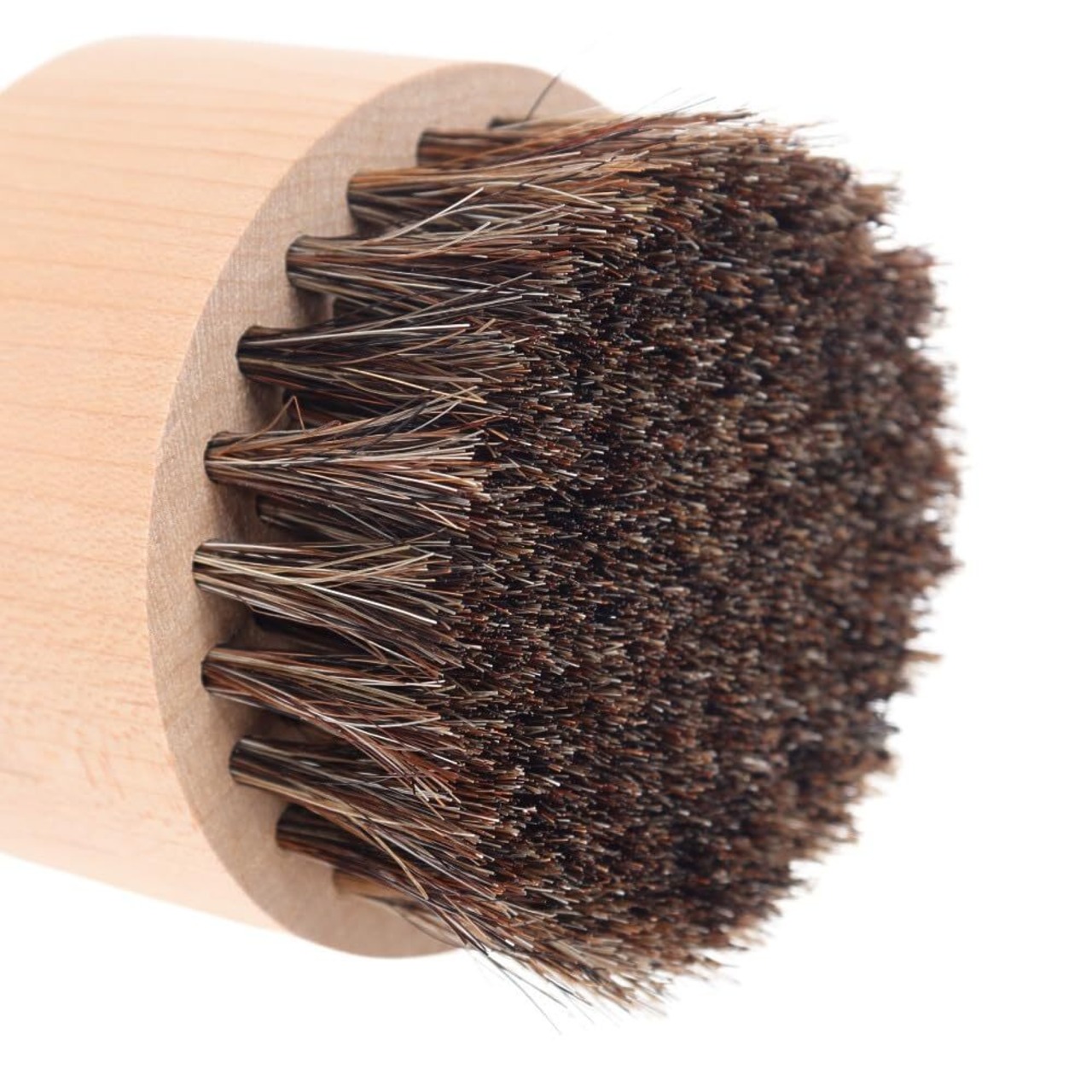 ソフトなタッチでグラブの汚れを優しく落としたり仕上げのツヤ出しにも使用できる馬毛ブラシ。