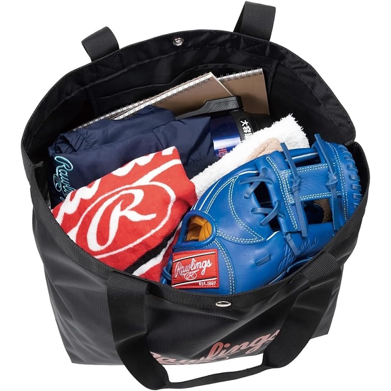 試合前、試合後に大活躍。着替え、タオル、グラブ、シューズ、水筒など大容量の収納が可能なトートバッグ。内ポケット付き。使用しない時はコンパクトに収納が可能です。
