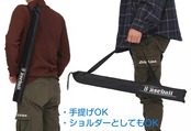 バックルを使った開閉方式で、バットの出し入れが簡単で素早く行えます。肩掛けストラップが付いており、手で持つことも肩に掛けることもでき、持ち運びが便利です。
