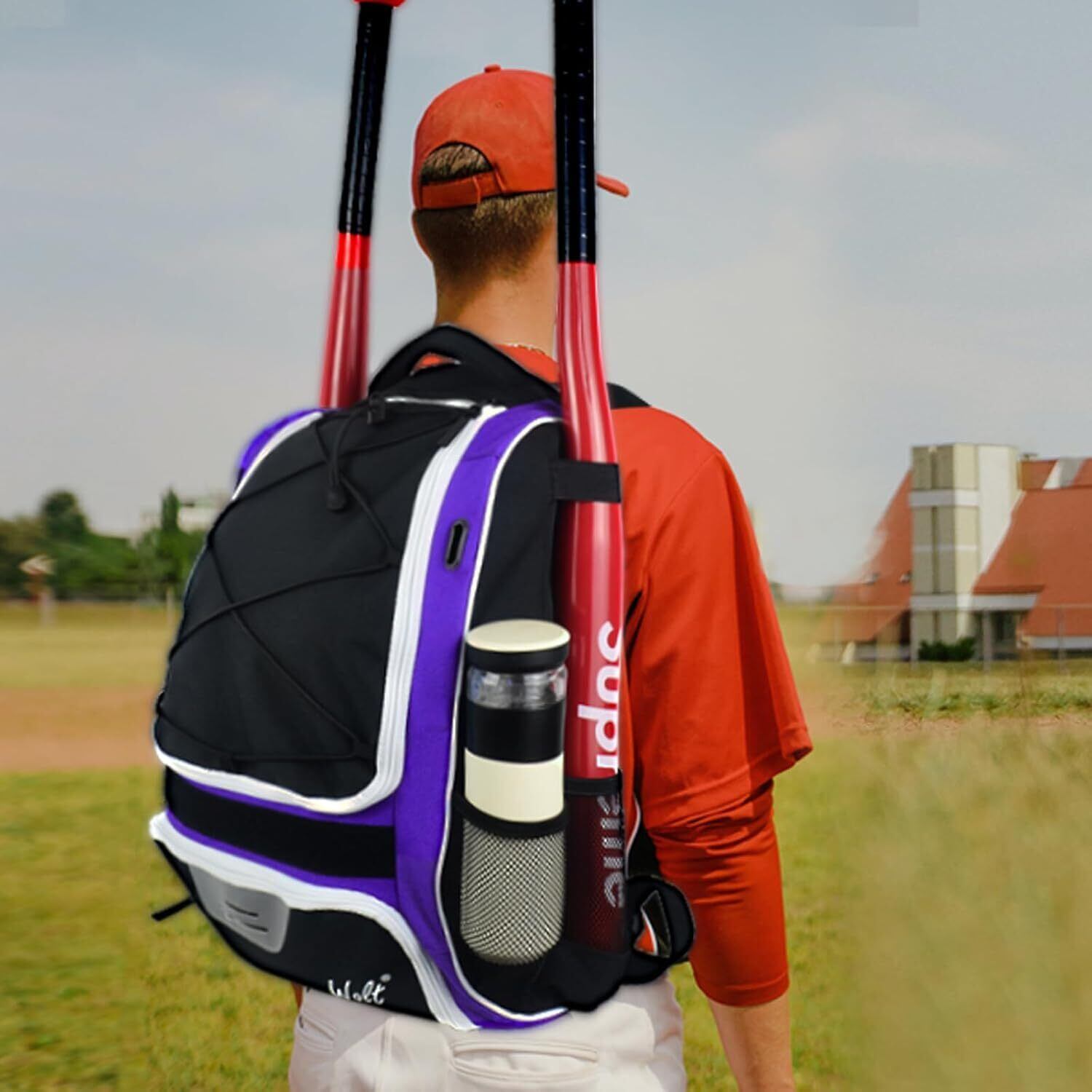 【大容量&多機能野球リュック】ヘルメット、グローブ、タオル、バッティンググローブなどを一括収納可能。靴専用の通気性コンパートメントで汚れた靴を他のアイテムと分離。4つのサイドポケット付きで、2本のバットやウォーターボトルも収納可能