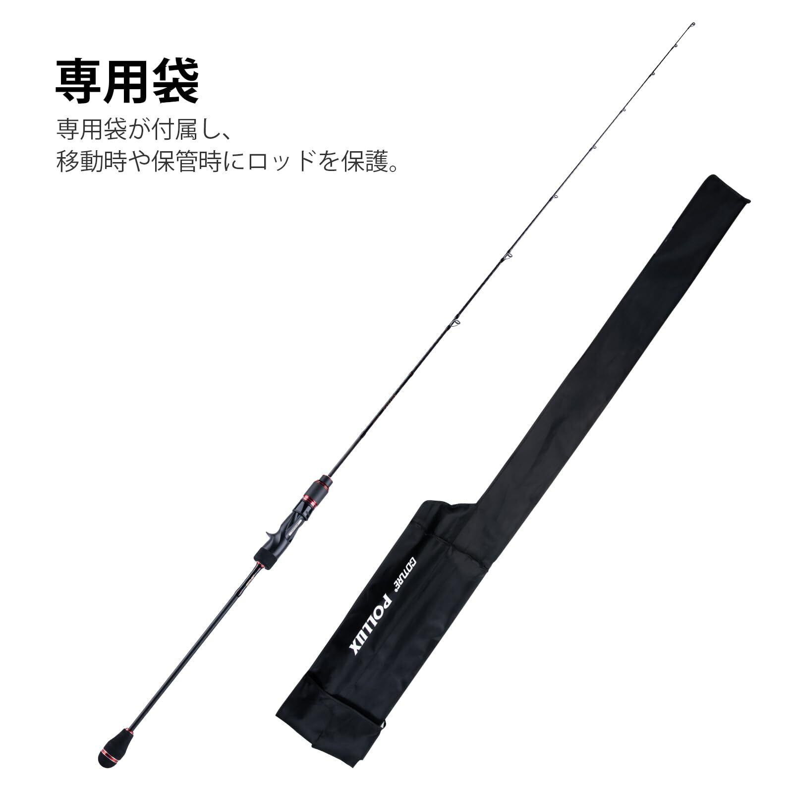 【製品仕様】スロージギングロッド(釣り竿)タイプ:ベイト│モデル:POLLUX Ⅲ 602MC│ 標準全長/仕舞(m):1.83/1.36│ 継ぎ:グリップ脱着│ 強度:ML│適合ライン:PE1.5-2.5│ルアー重量(g):~210g│ガイド数:7+TIP │重量:117g 細身かつ軽量に設計されているため、長時間の使用でも、疲れにくいロッドです。