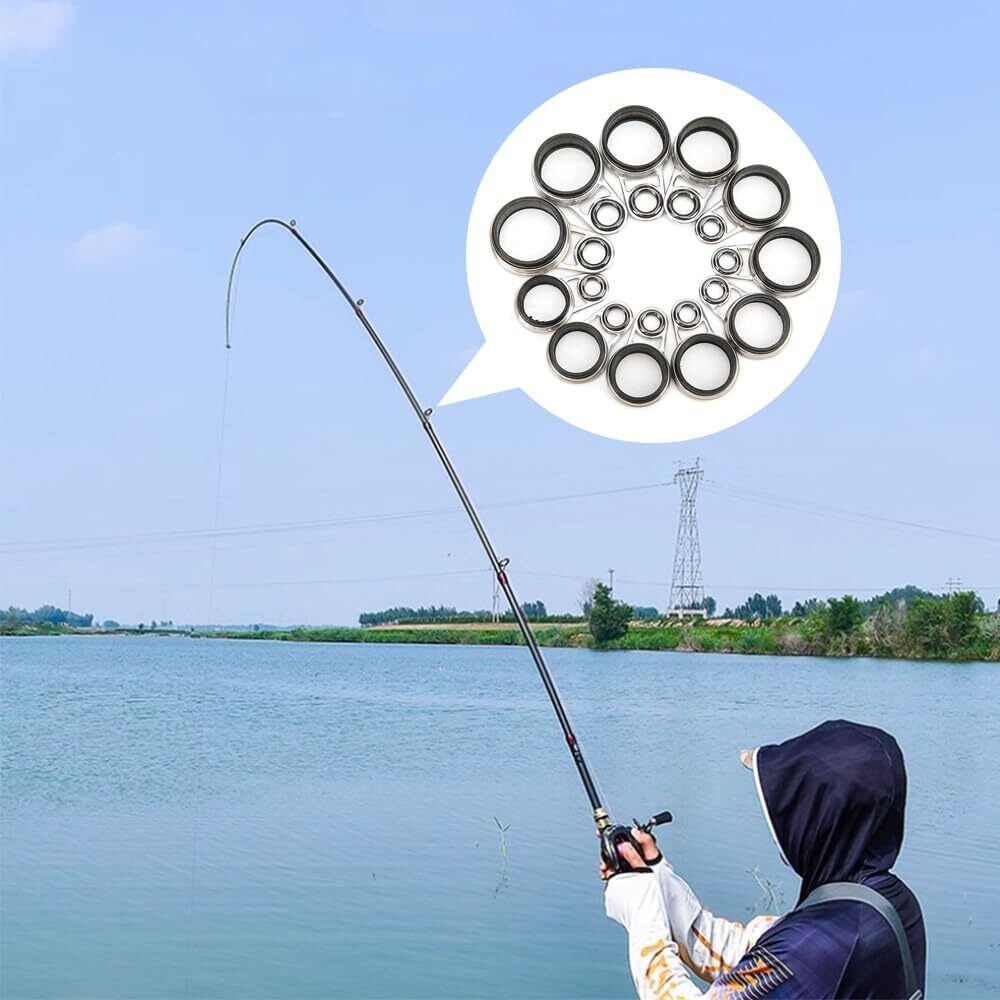 釣竿 ロッドガイド アイリング 25個セット アイ2.0mm~15mm 釣り竿穂先 ステンレス 釣り竿 釣り竿ガイド 多サイズ セラミックリング フィッシング用 交換 修理キットパイプ