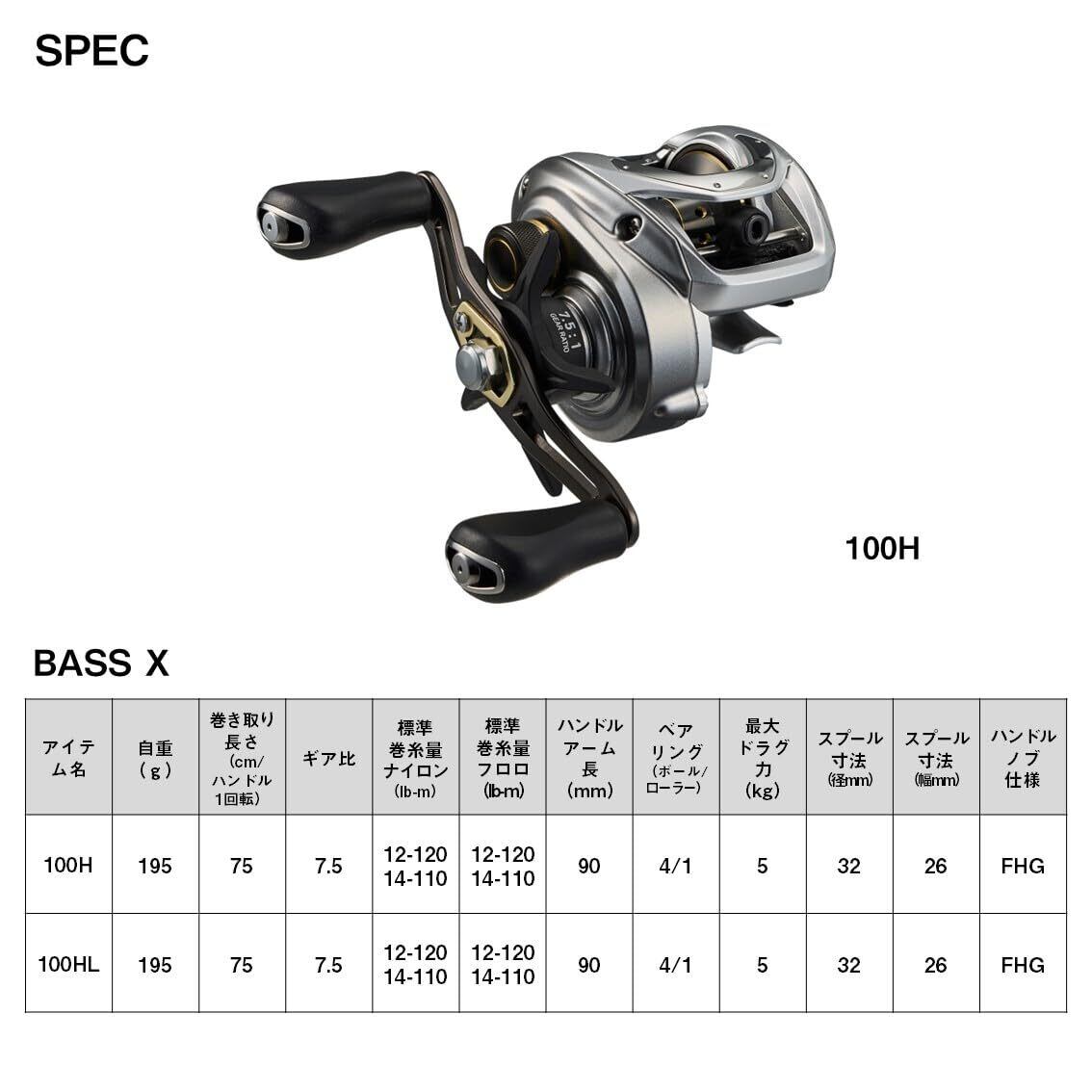 ダイワ(DAIWA) ベイトリール 24バス X 100H/100HL 各種 (2024年モデル)