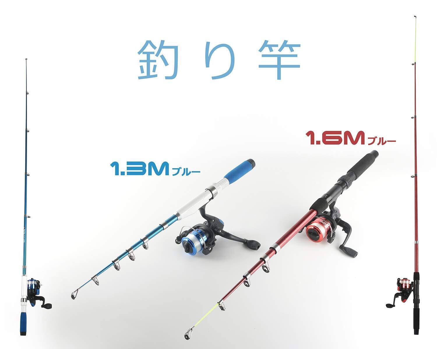 【2本の釣りセット】1.6m釣り竿1本+1.3m釣り竿1本+スピニングリール2個(釣り糸が含まる)+36点ルアーセット+収納用な釣りバッグ1個 本セットは、釣りに必要な道具を全部含み、他の付属品を購入する必要なく、このままで利用頂けます。