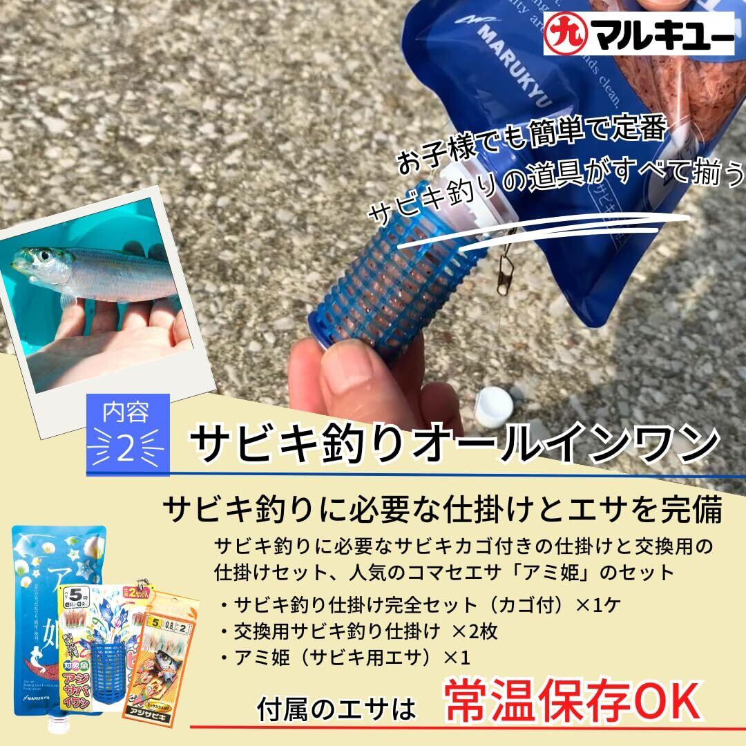 【虫エサが苦手でも大丈夫】疑似餌はゴム素材のため触っても動きません。ブルーベリーの香り付でお子様や女性でも安心。サビキ釣りのコマセエサもキャップ付で手が汚れにくい仕様。初めてでも快適に釣りが楽しめます
