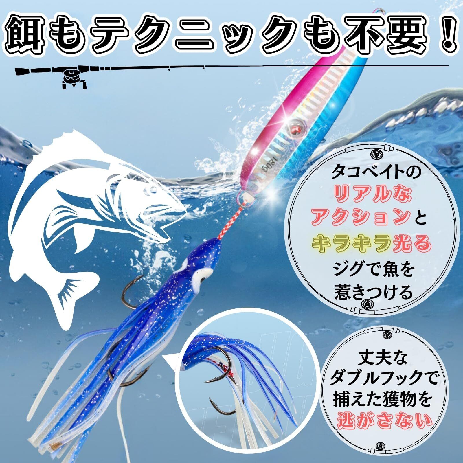 【初心者でも使いやすい】難しいロッドアクションなしでも、水流によるタコベイトの自然な動きとキラキラ光るジグで魚を惹きつけます。