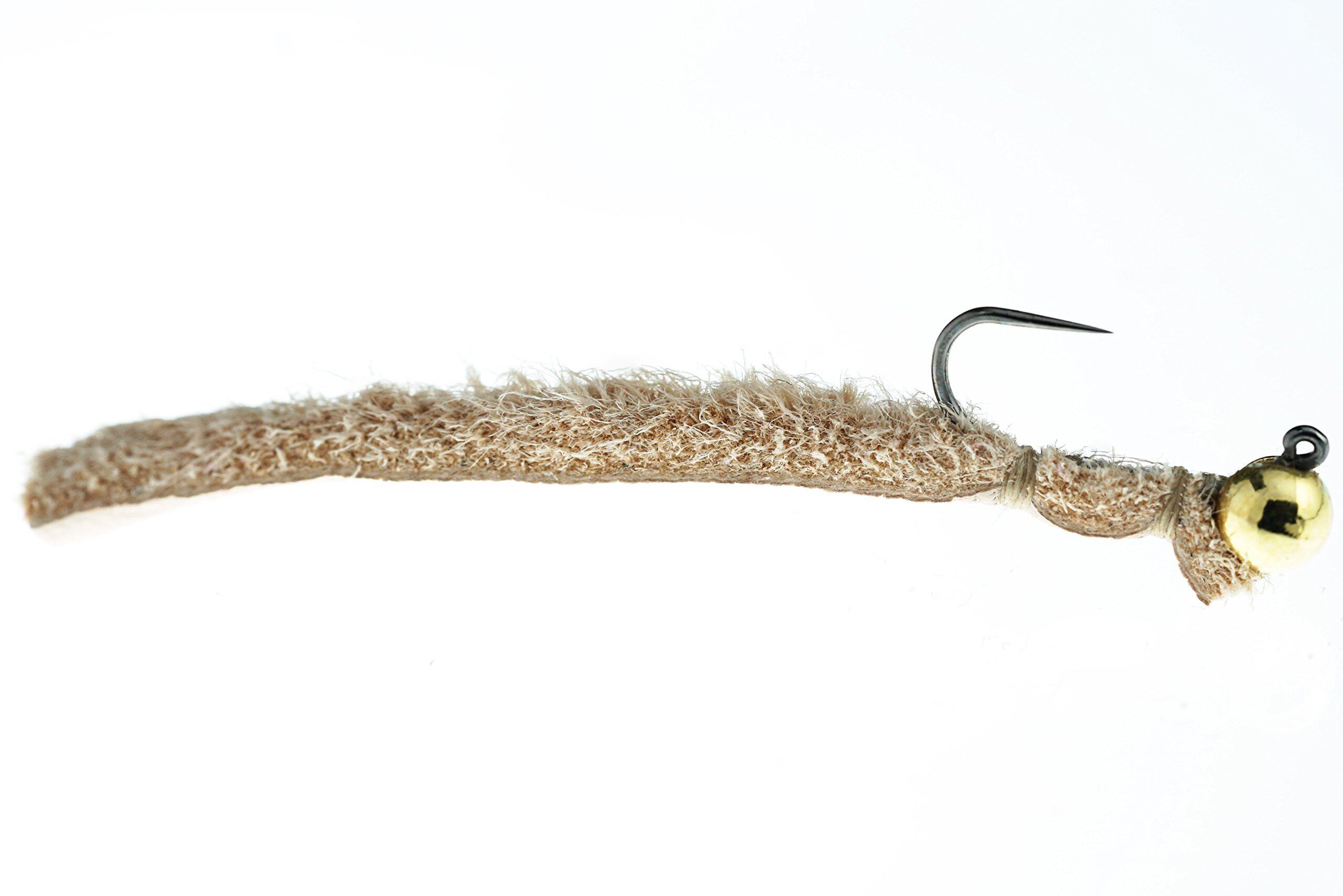 XSサイズ 含水時1.1g 乾燥時0.6g 細身のシルエットとゴールドタングステンビーズで飛距離も十分 天然素材のしなやかな動きに鱒も思わず口を使います。