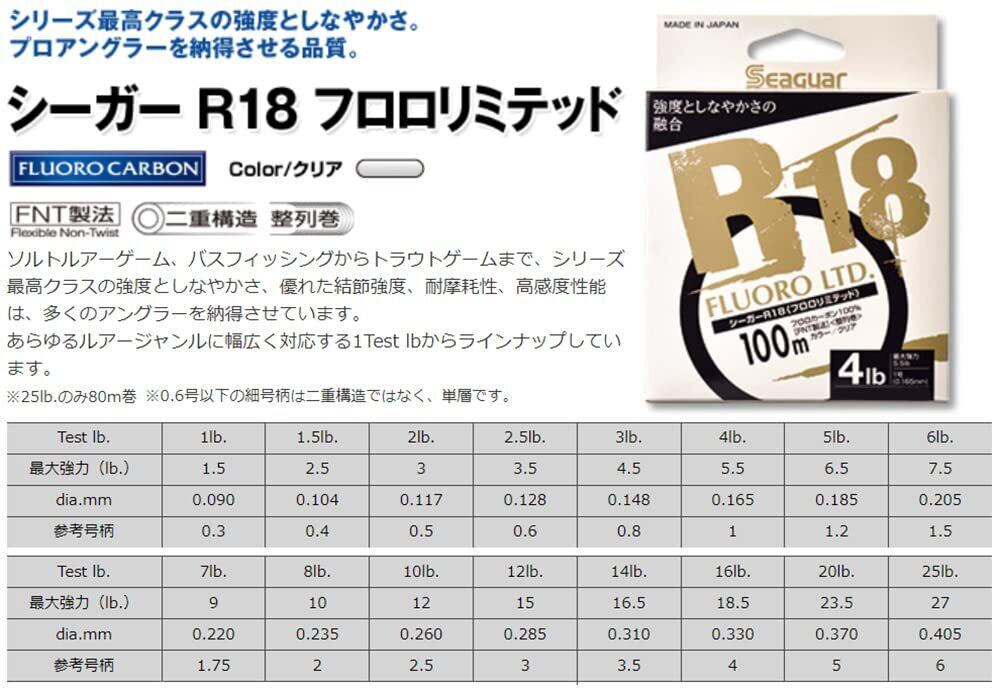 シーガー(Seaguar) ライン シーガー R-18フロロリミテッド 100m 16lb 透明