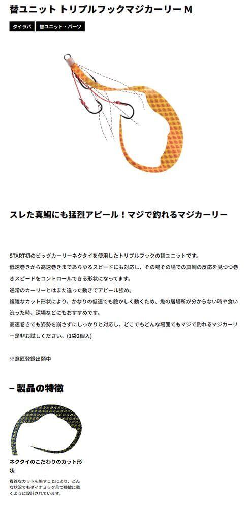その場その場での真鯛の反応を見つつ巻きスピードをコントロールできる"マジカーリー (ビッグカーリーネクタイ)"を搭載した3本鈎仕様の替ユニットです!