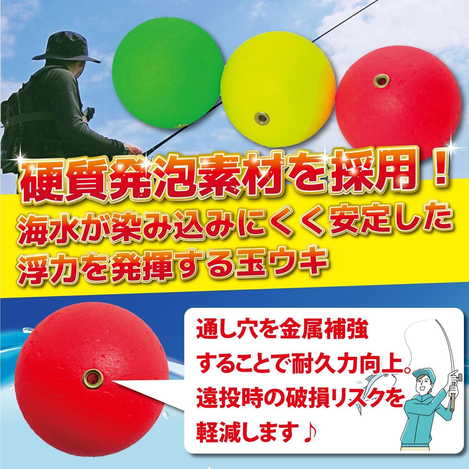 【錘負荷6号(22.5g)相当の浮力を発揮】玉ウキ1個で6号までの浮力を発揮します。複数個を数珠つなぎにすることで浮力+潮の流れを読むなど様々な使い方が可能。※7号の錘では沈みます(検証済み)