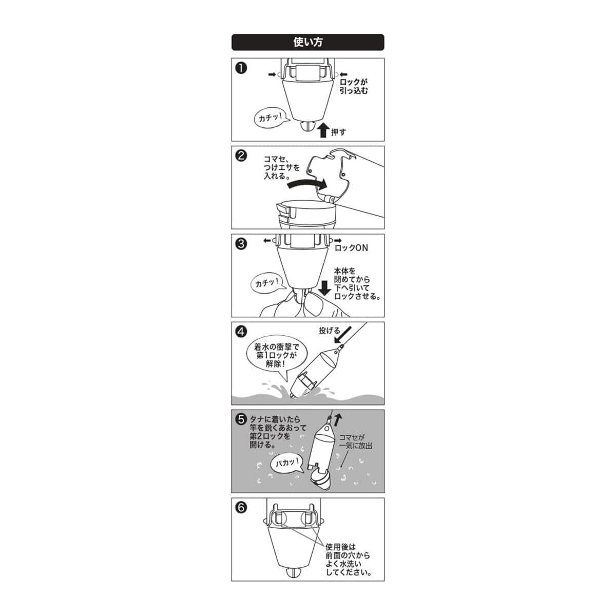 新製品「アポロ一発カゴ」は、2段ロック式で、ロック機構をコマセカゴにすべて内蔵させました。外周にロック機構を出さないことにより、糸がらみ、衝突による変形を防ぐ、遠投性に優れた形状を形成できる、画期的な一発カゴです。カゴの大きさは、“アポロカゴ"と同程度寸法です。海面に当たると作動する第1ロック機構! シャクると開く第2ロック機構!