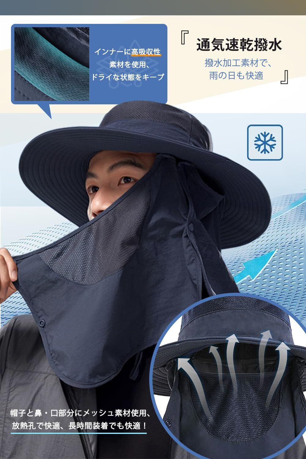 【360°UVカット&肌を保護し】UPF 50+認証済み、UVカット99.9%以上で、つばが10cm広めで、かぶるだけでだけで簡単に日焼け止め、UV効果の強い日差し季節にのアウトドアは最適です。360度全方位からの日差しをしっかり防御、紫外線による肌へのダメージを最小限に抑えます。視界を遮ることはなく肌を保護し、完全防備のUVカット・熱中症対策用日除け帽子です!